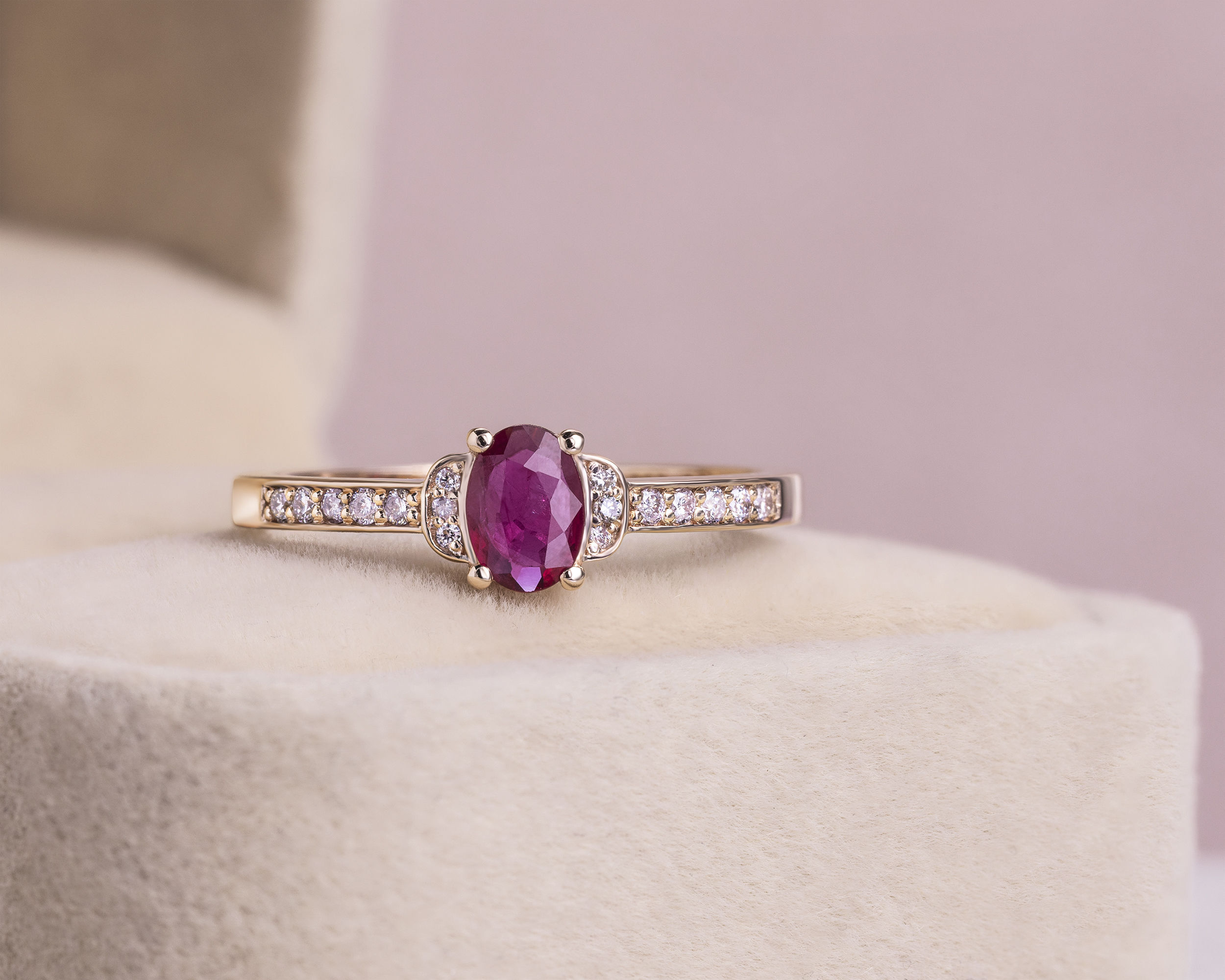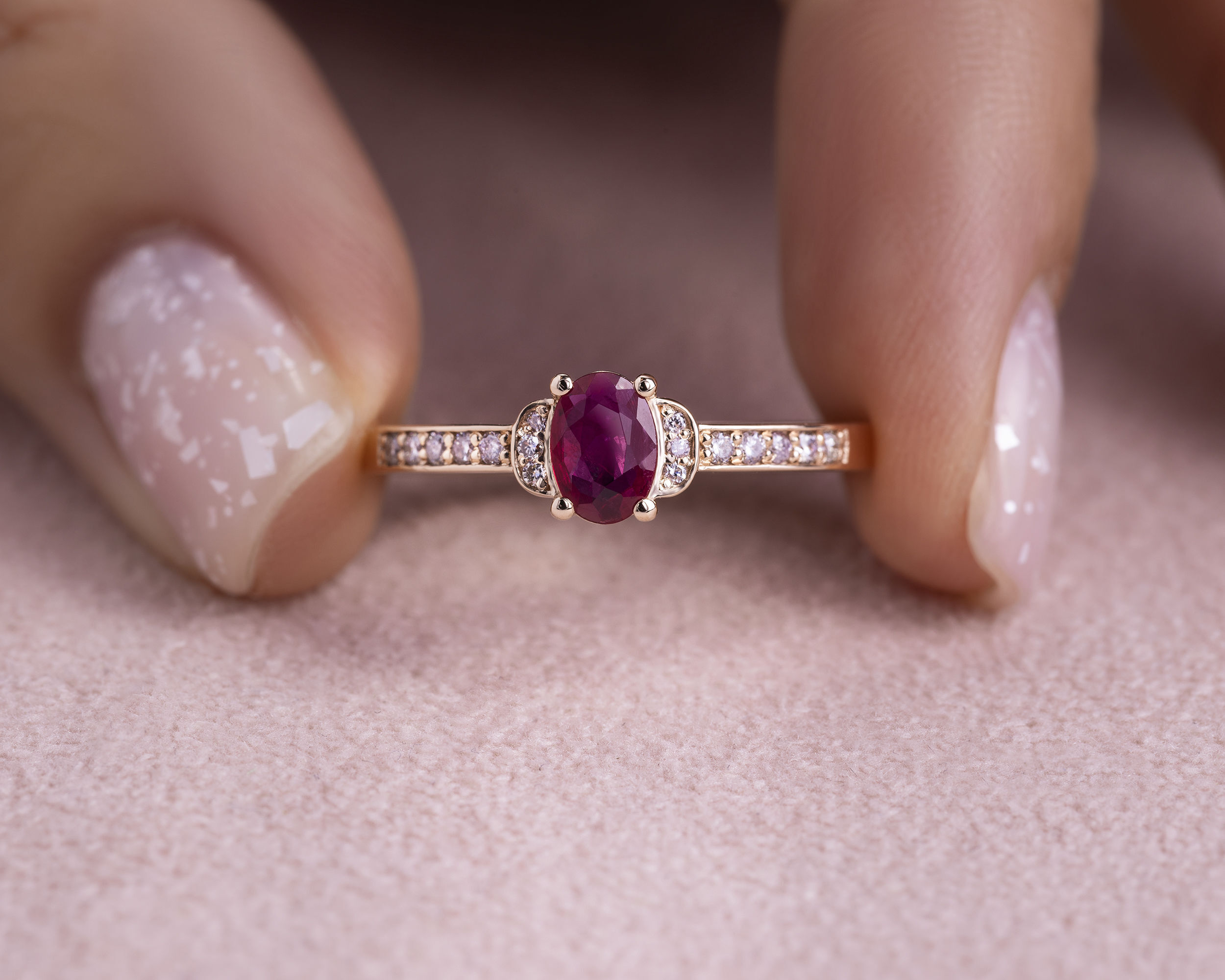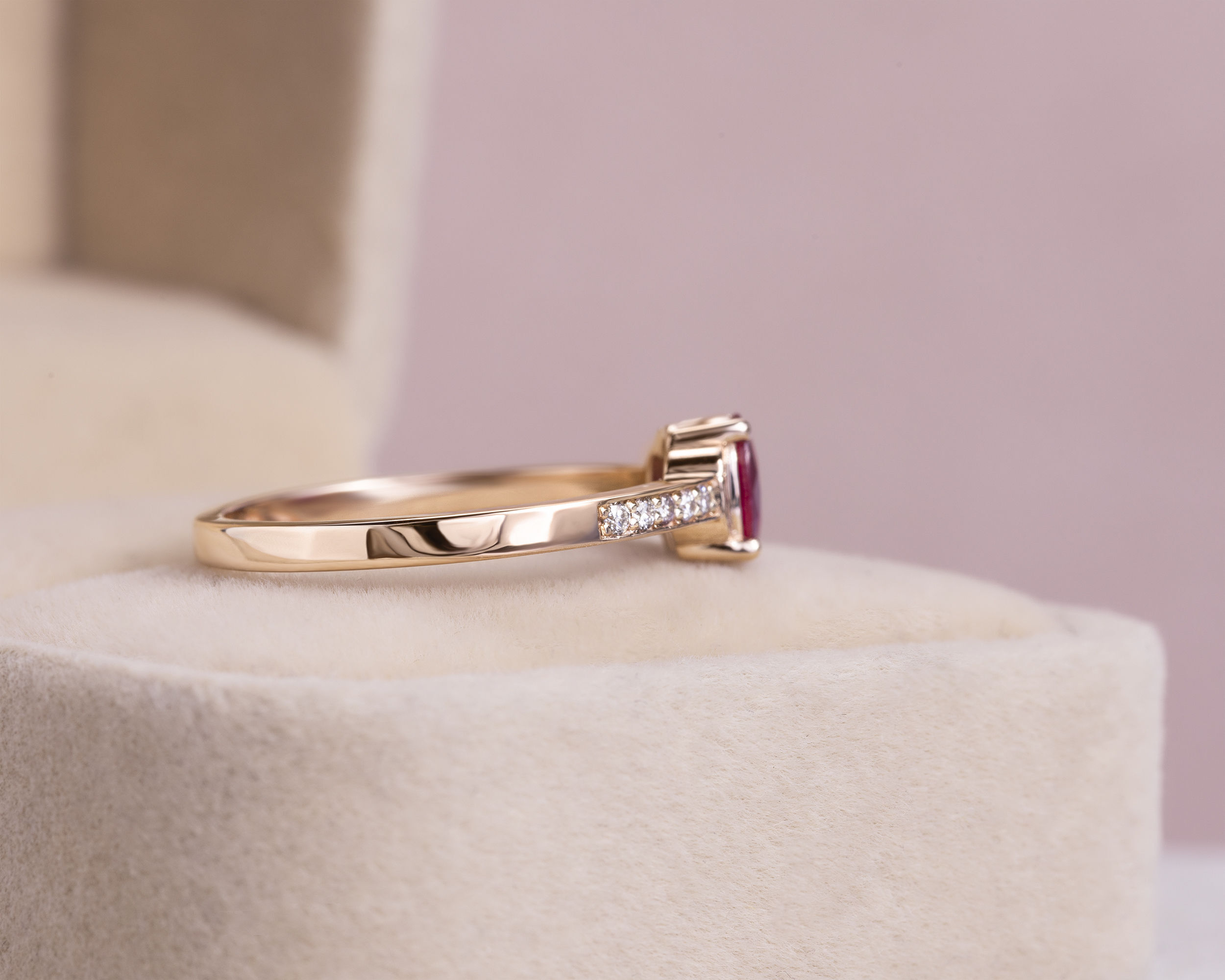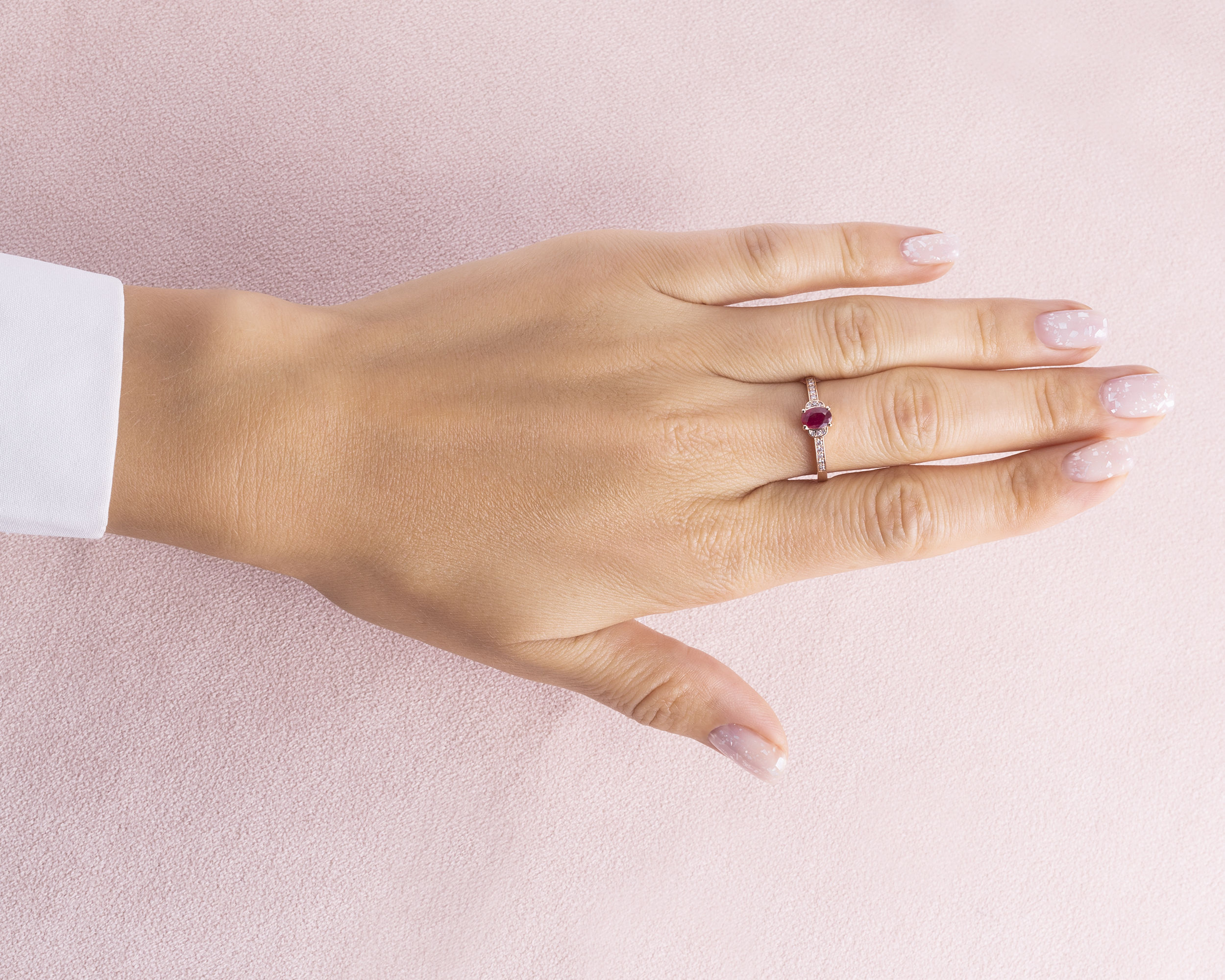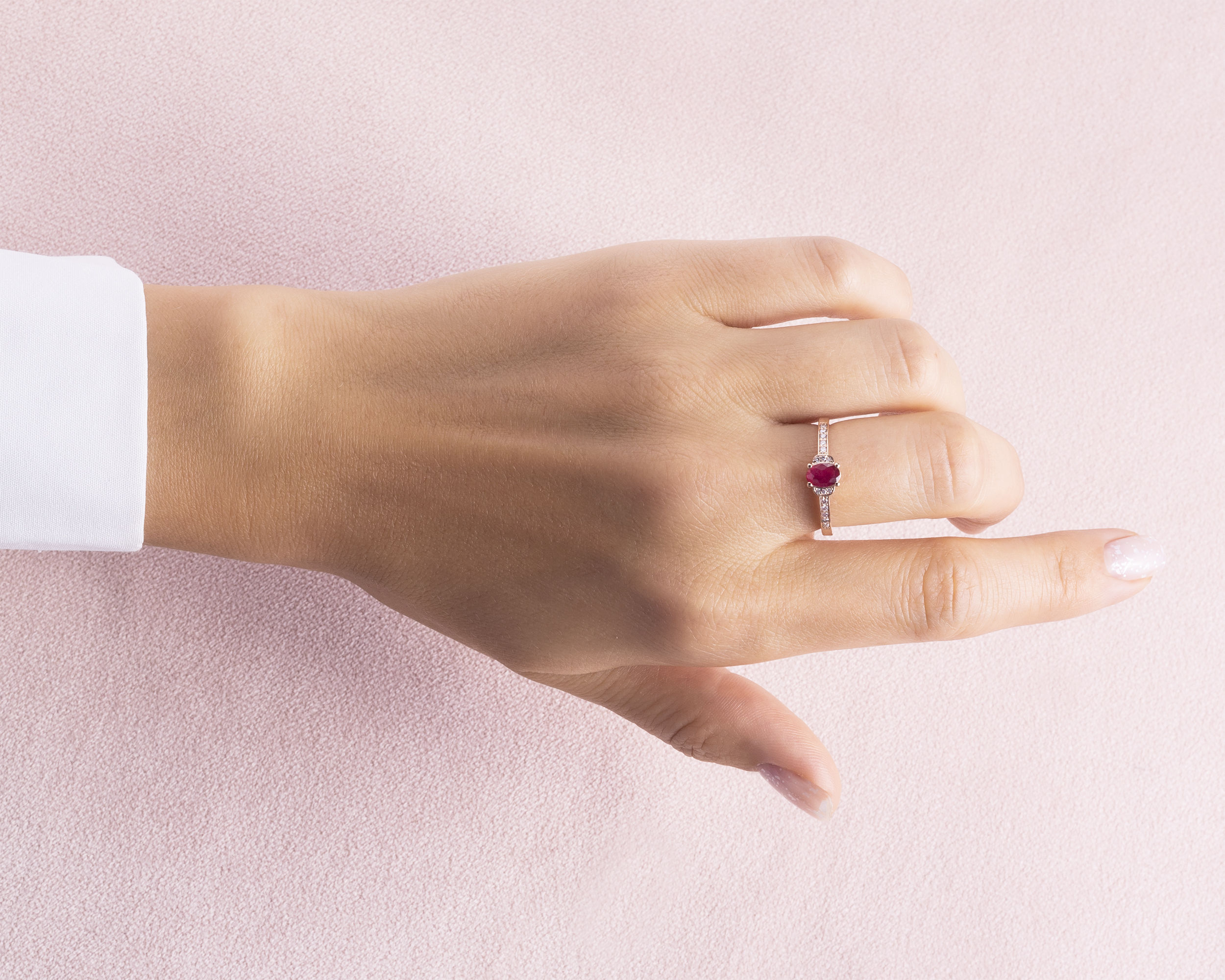 0.47 Ct Red Ruby & Natural Faint-Light Pink Diamond SI2-I1 14k Rose Gold Ring