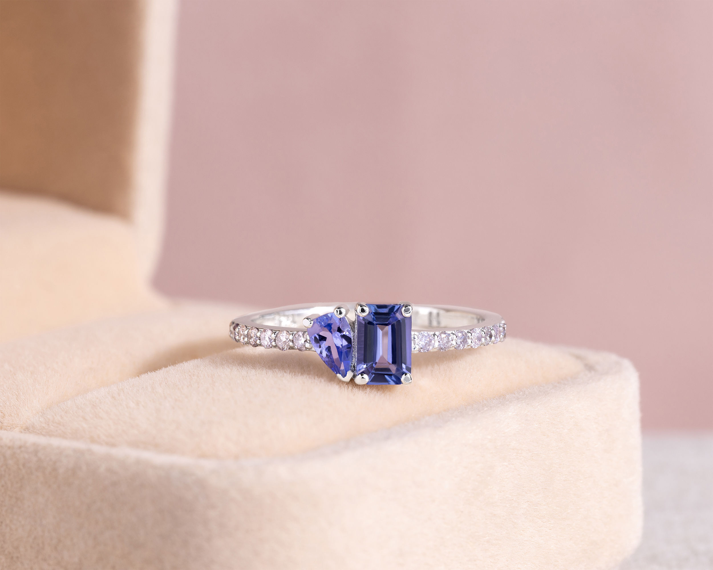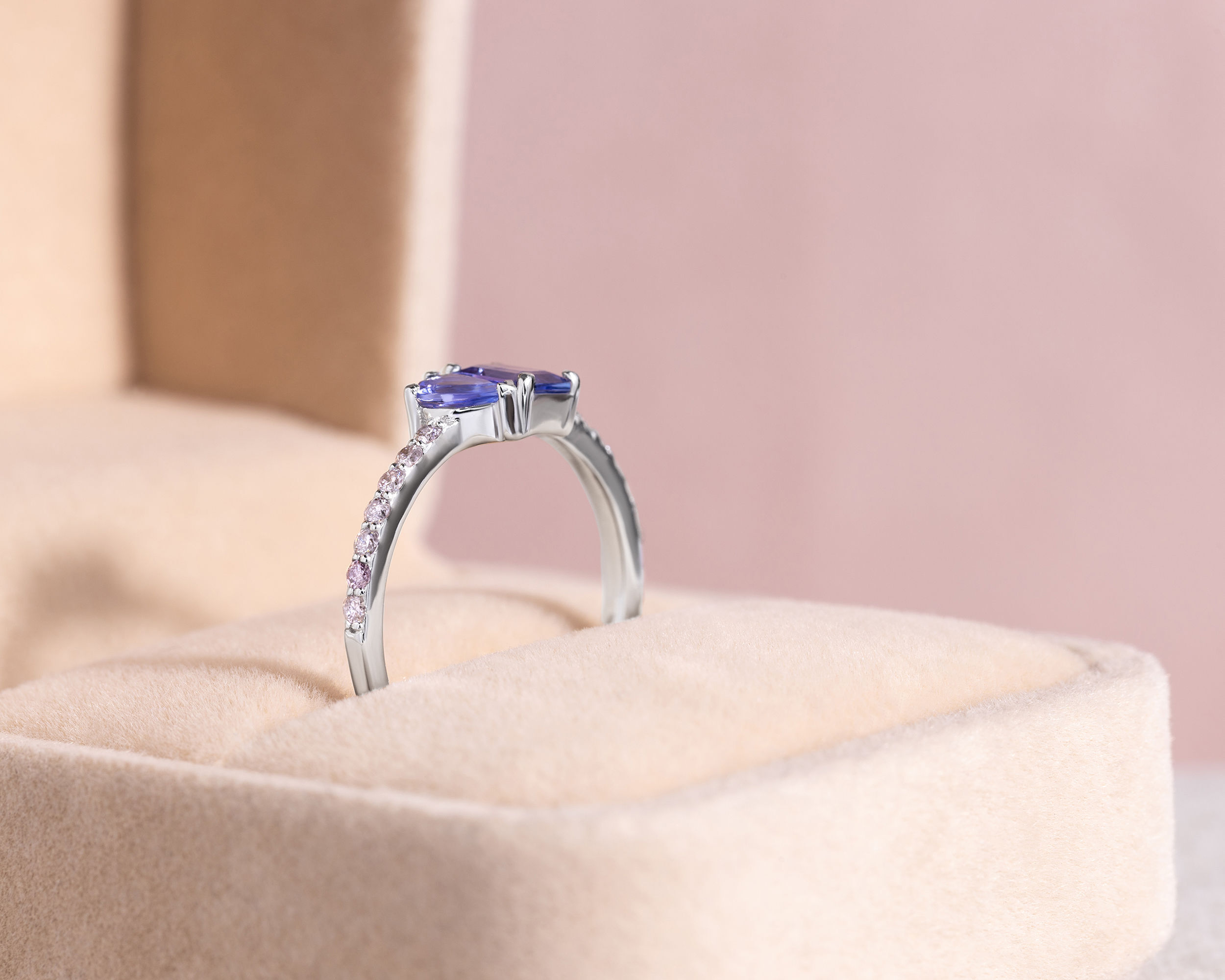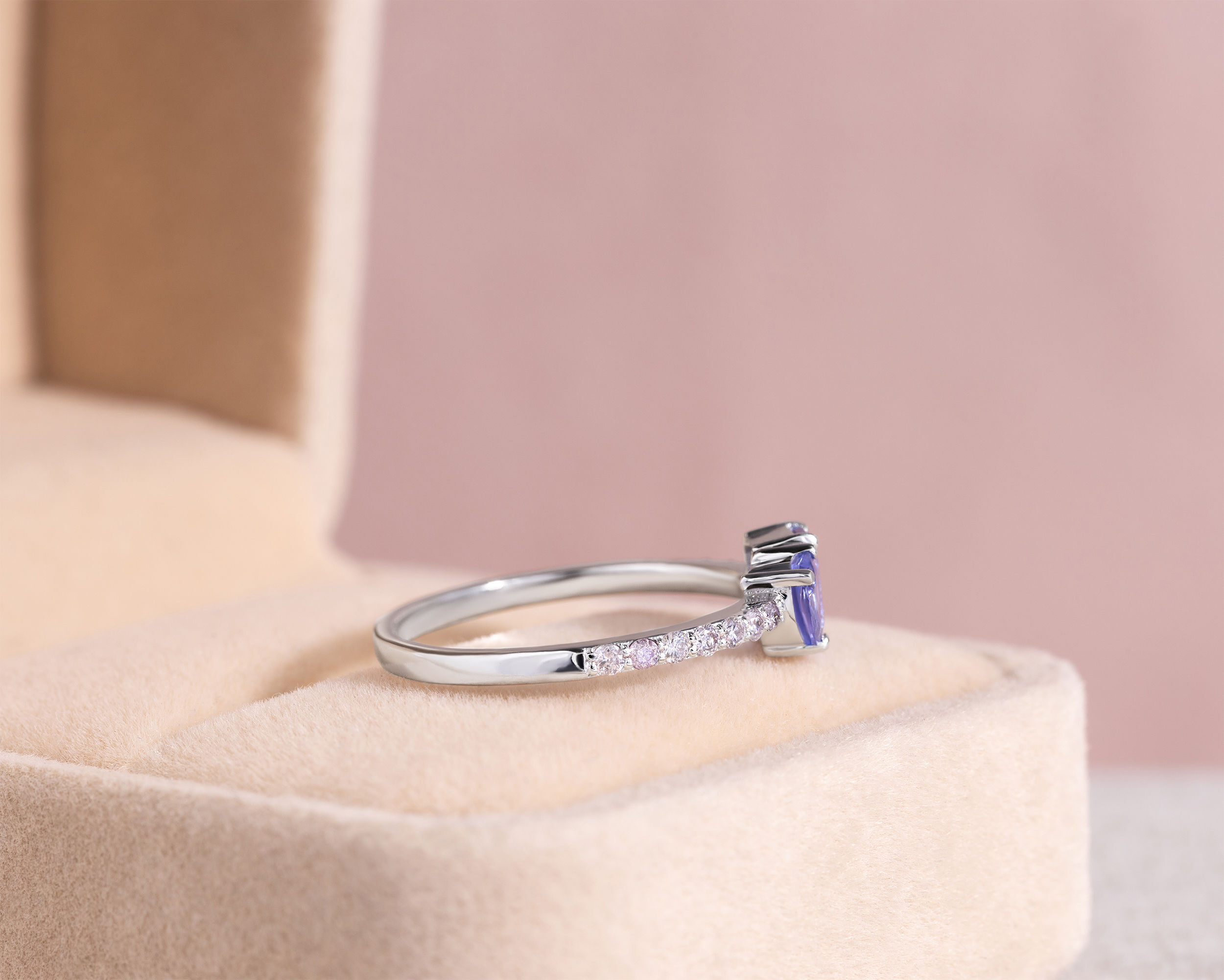 1.25 Ct Bluish Purple Tanzanite & Faint-Light Pink Diamond SI2-I1 14K White Gold Ring
