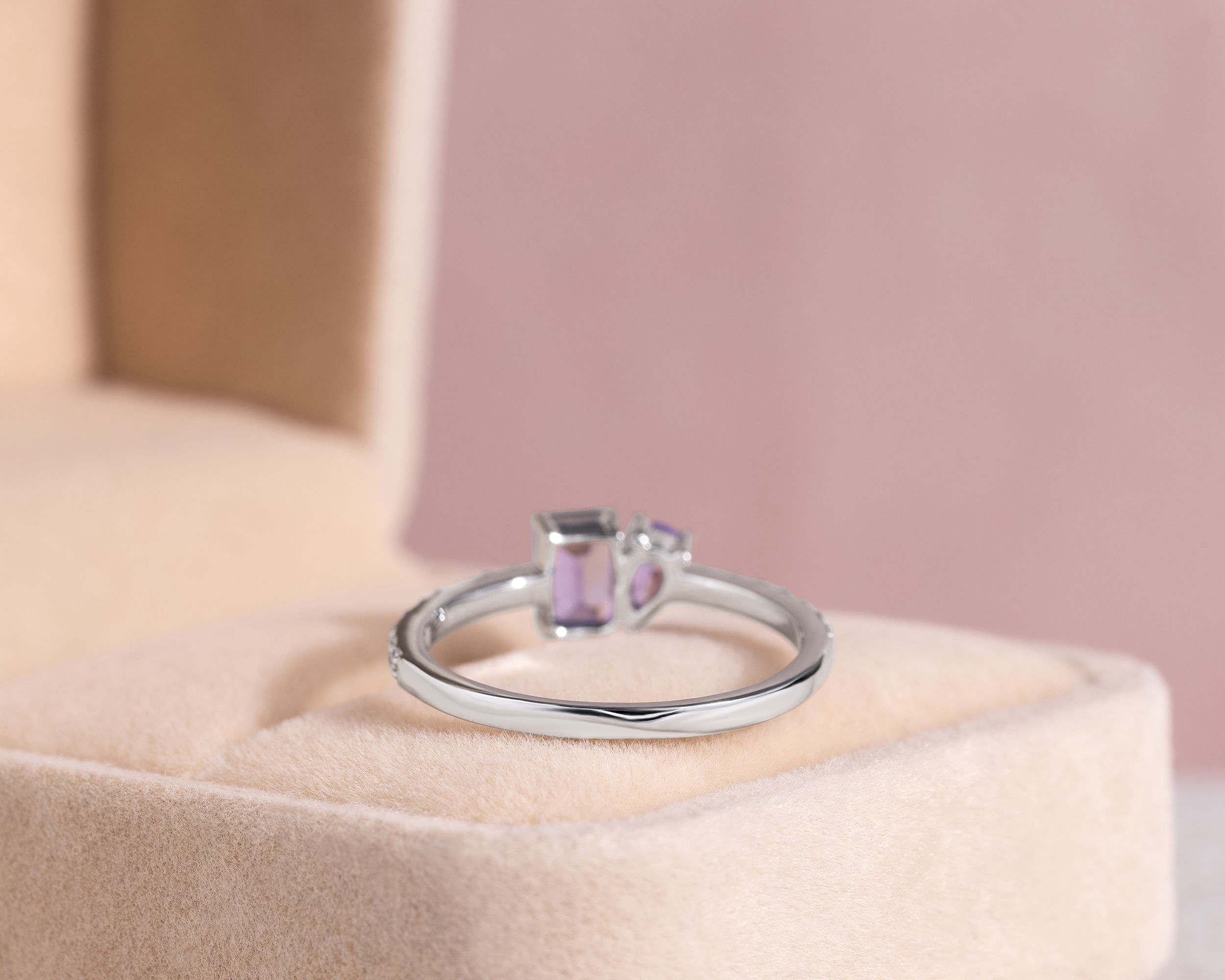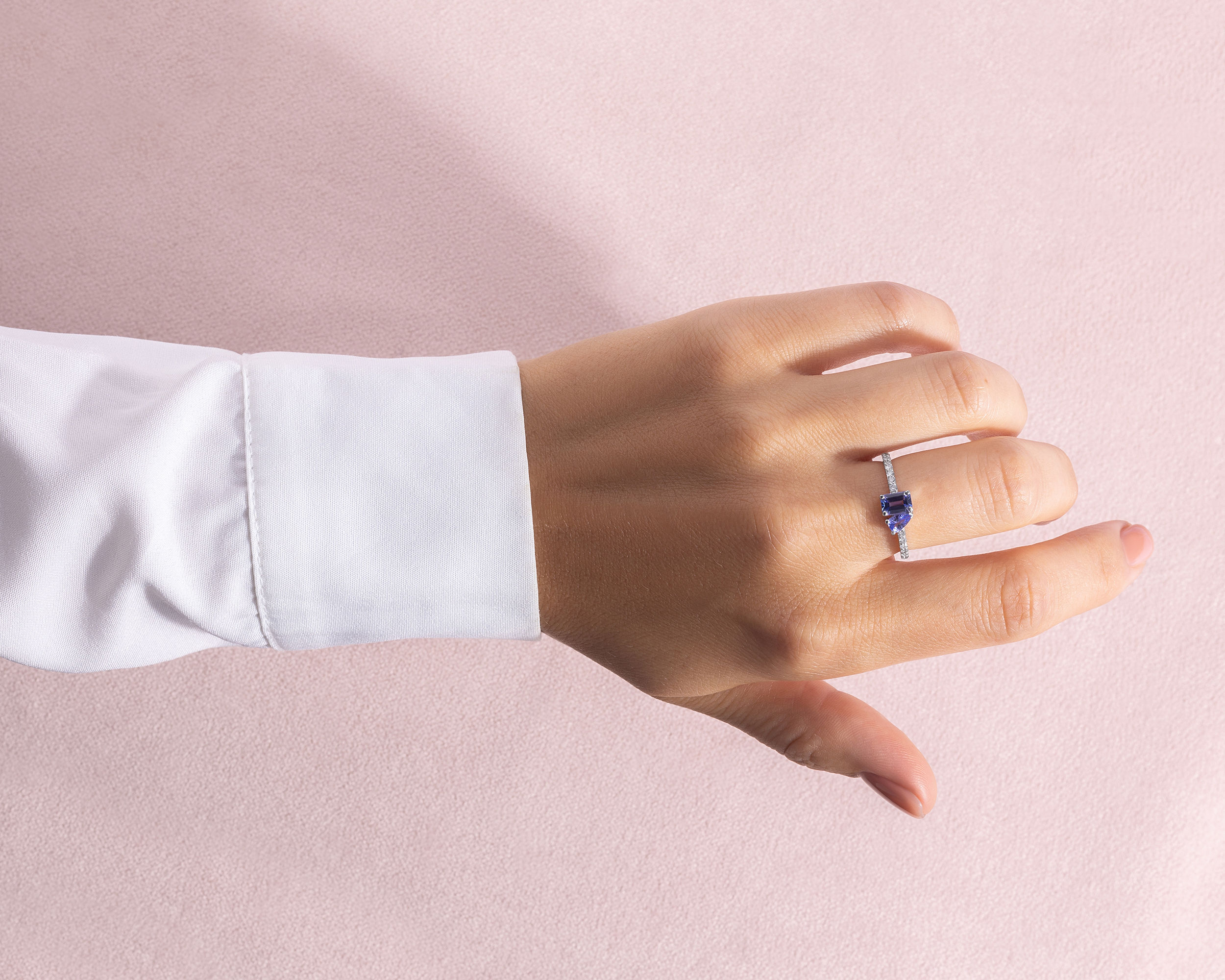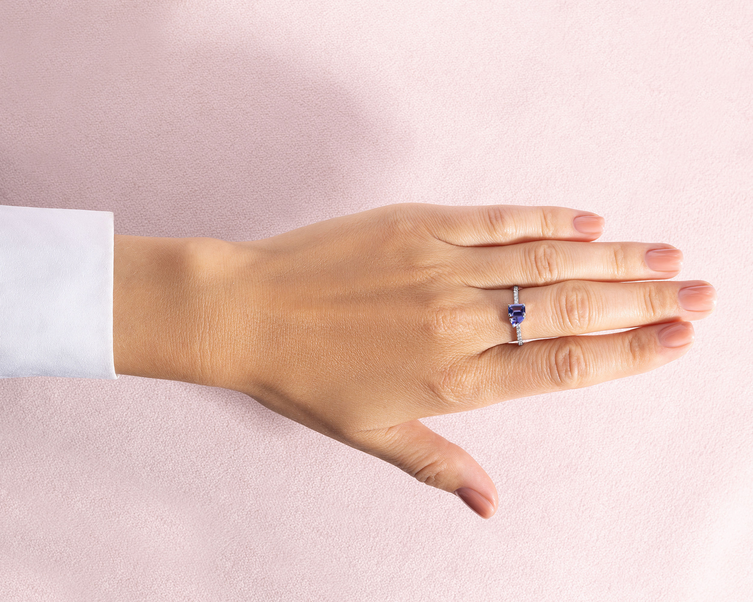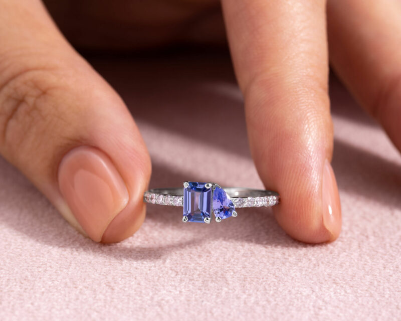 1.25 Ct Bluish Purple Tanzanite & Faint-Light Pink Diamond SI2-I1 14K White Gold Ring