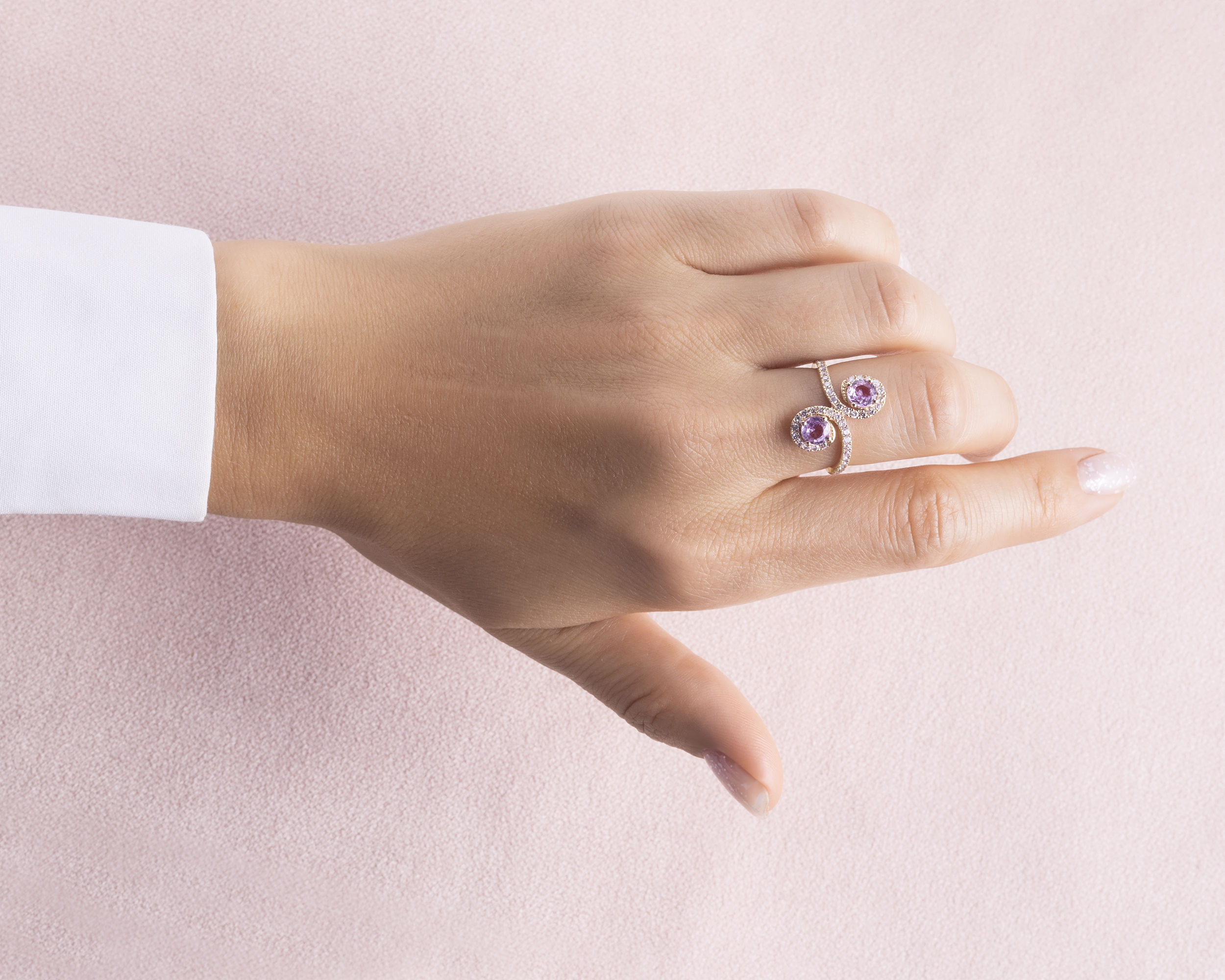 1.44 Ct Pink Sapphire & Faint-Light Pink Diamond SI2-I1 14k Rose Gold Ring