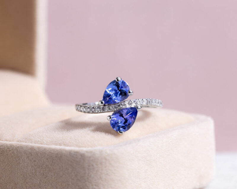 1.70 Ct Bluish Purple Tanzanite & Natural Faint-Light Pink Diamond SI2-I1 14k White Gold Ring