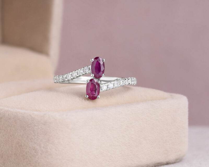 1 Ct Purplish Red Oval Mixed Ruby Ring Natural Diamond 14k White Gold D-F/SI1-I2