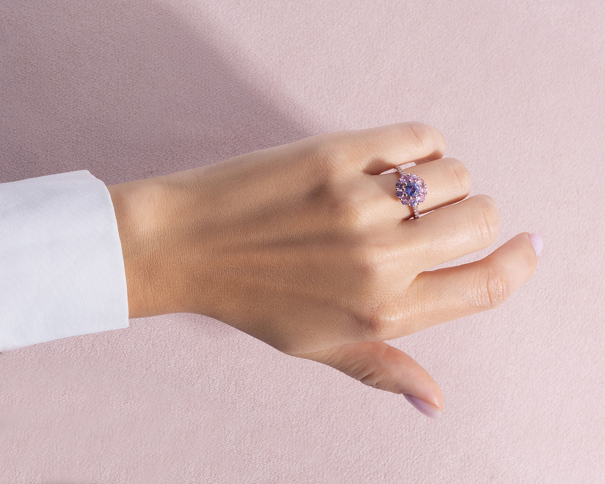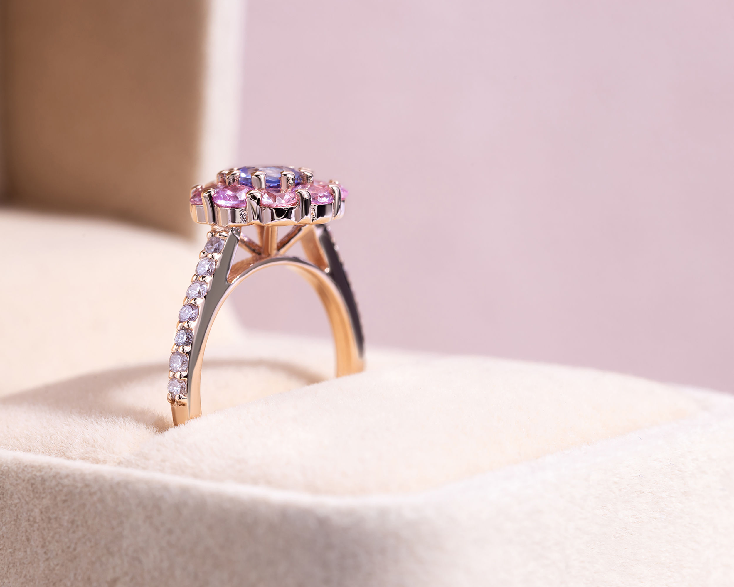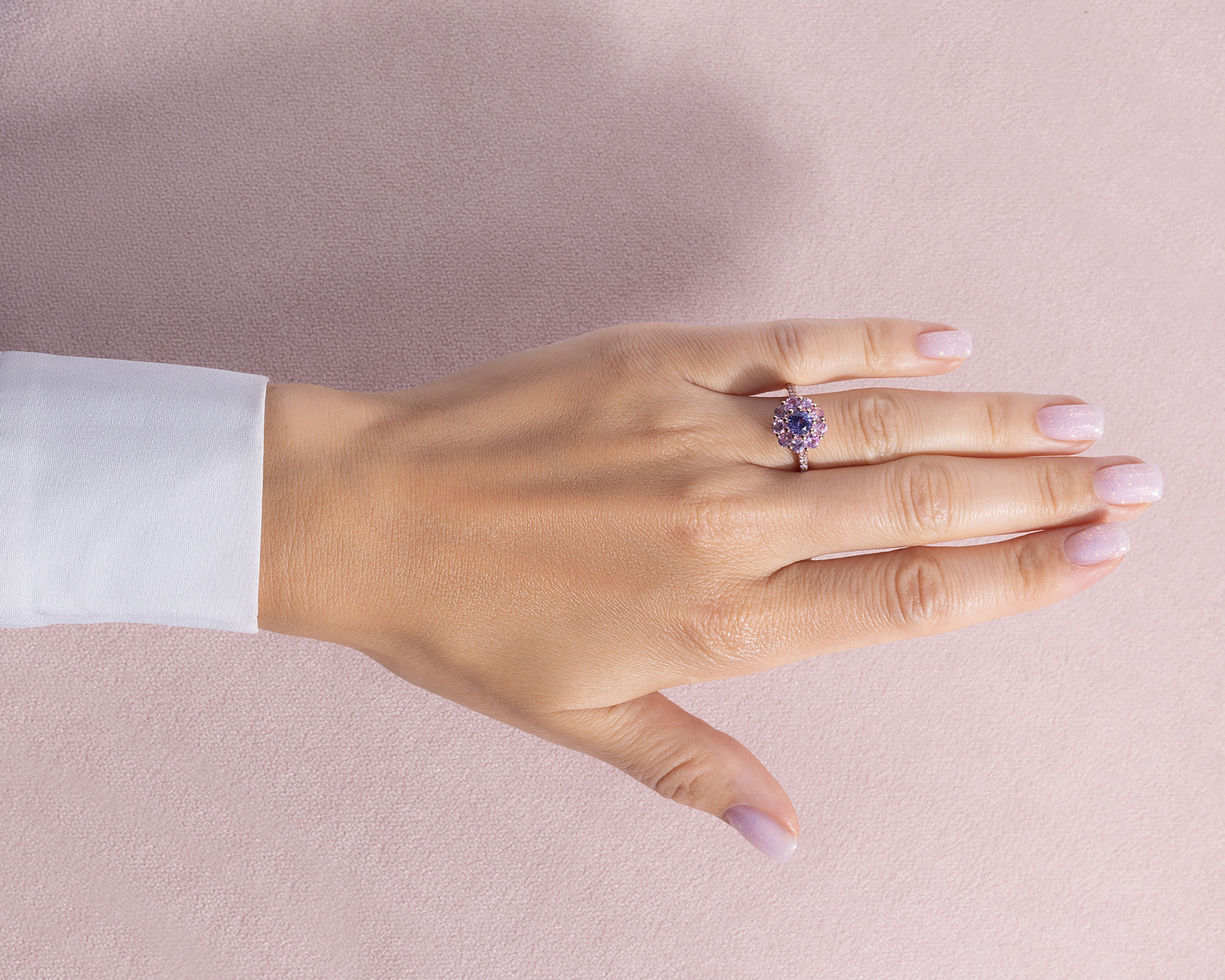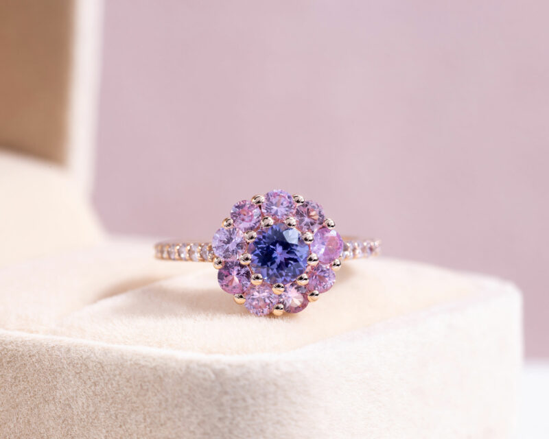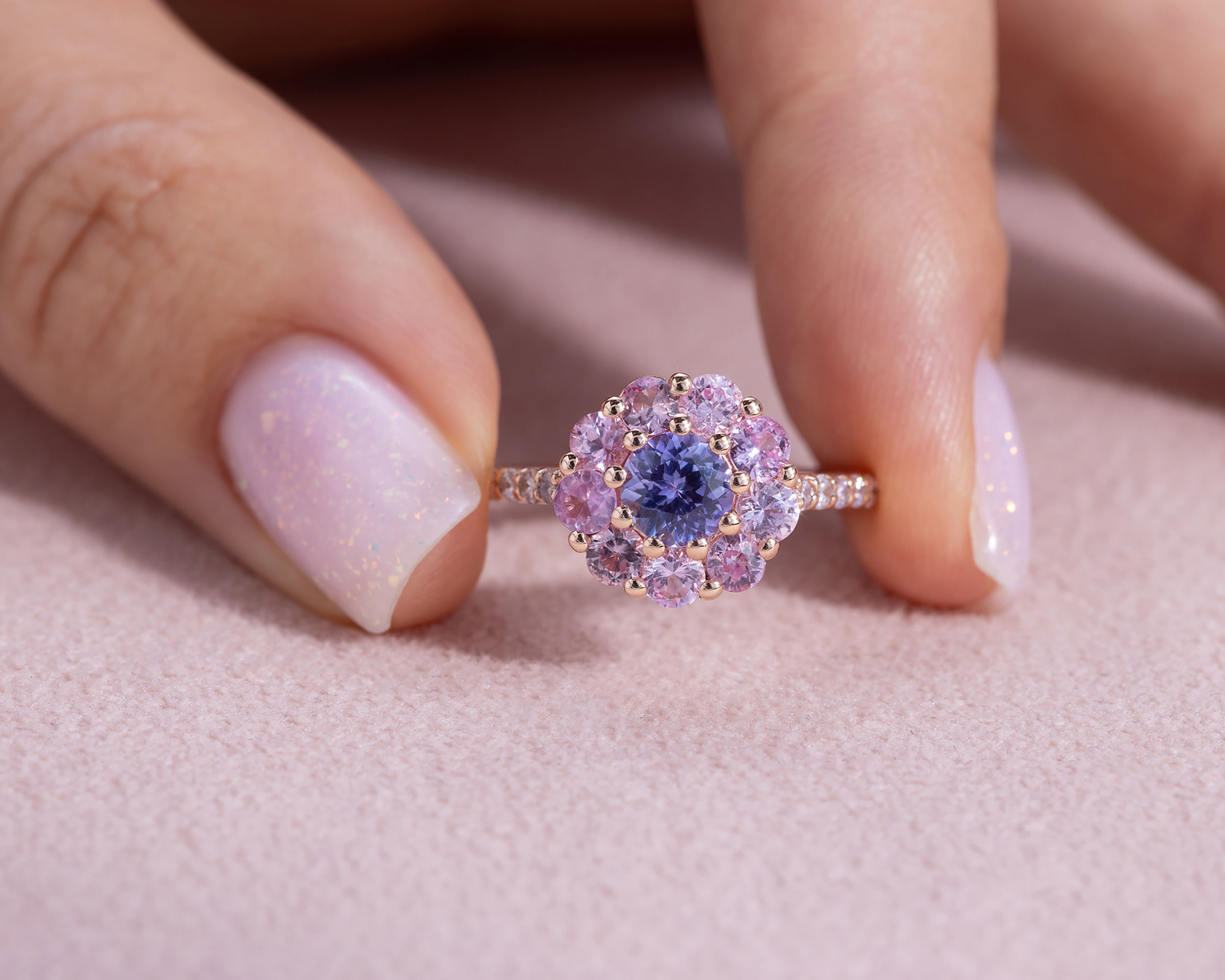 2.26 Ct Purplish Blue Tanzanite & Pink Sapphire Ring 14k Rose Gold Real