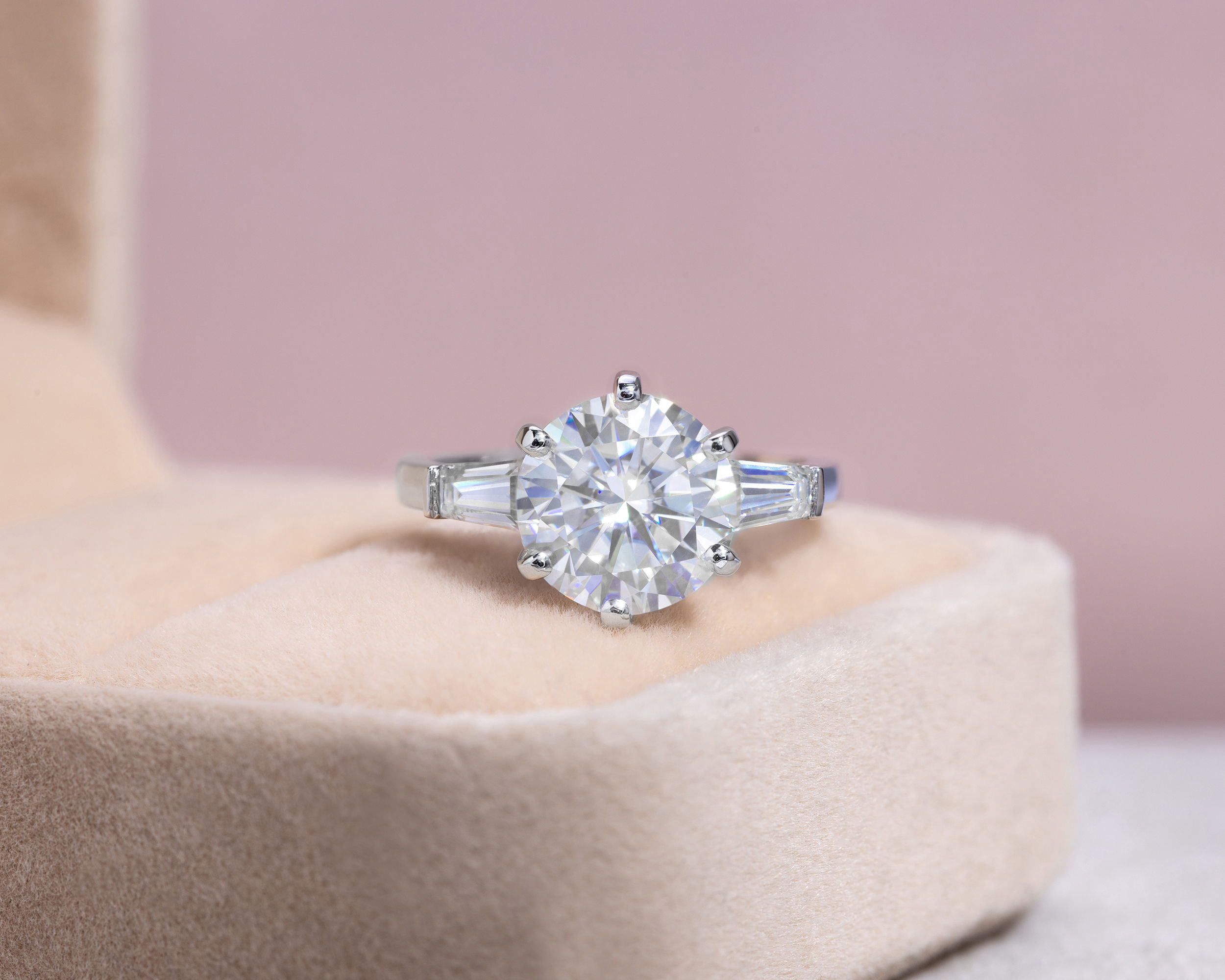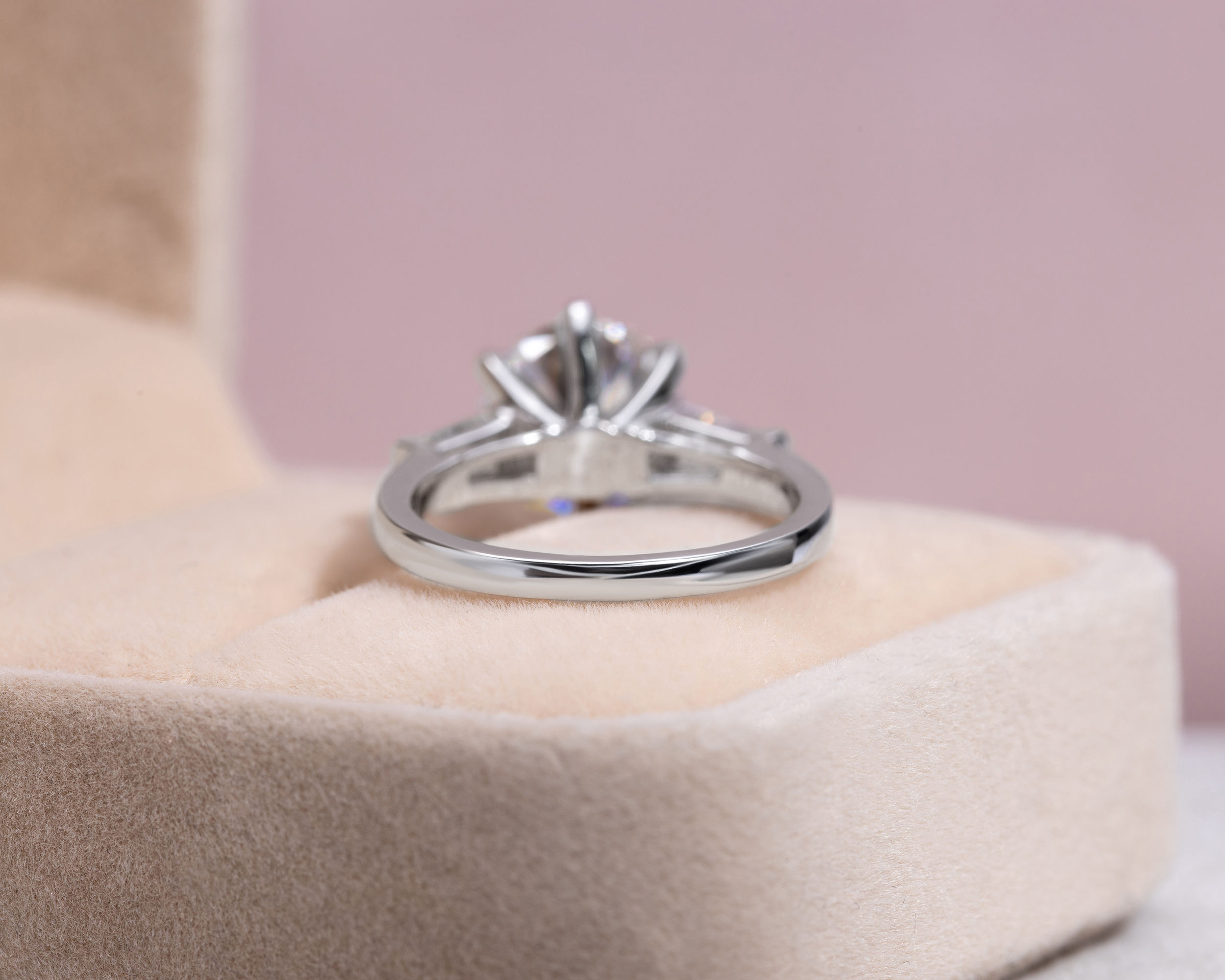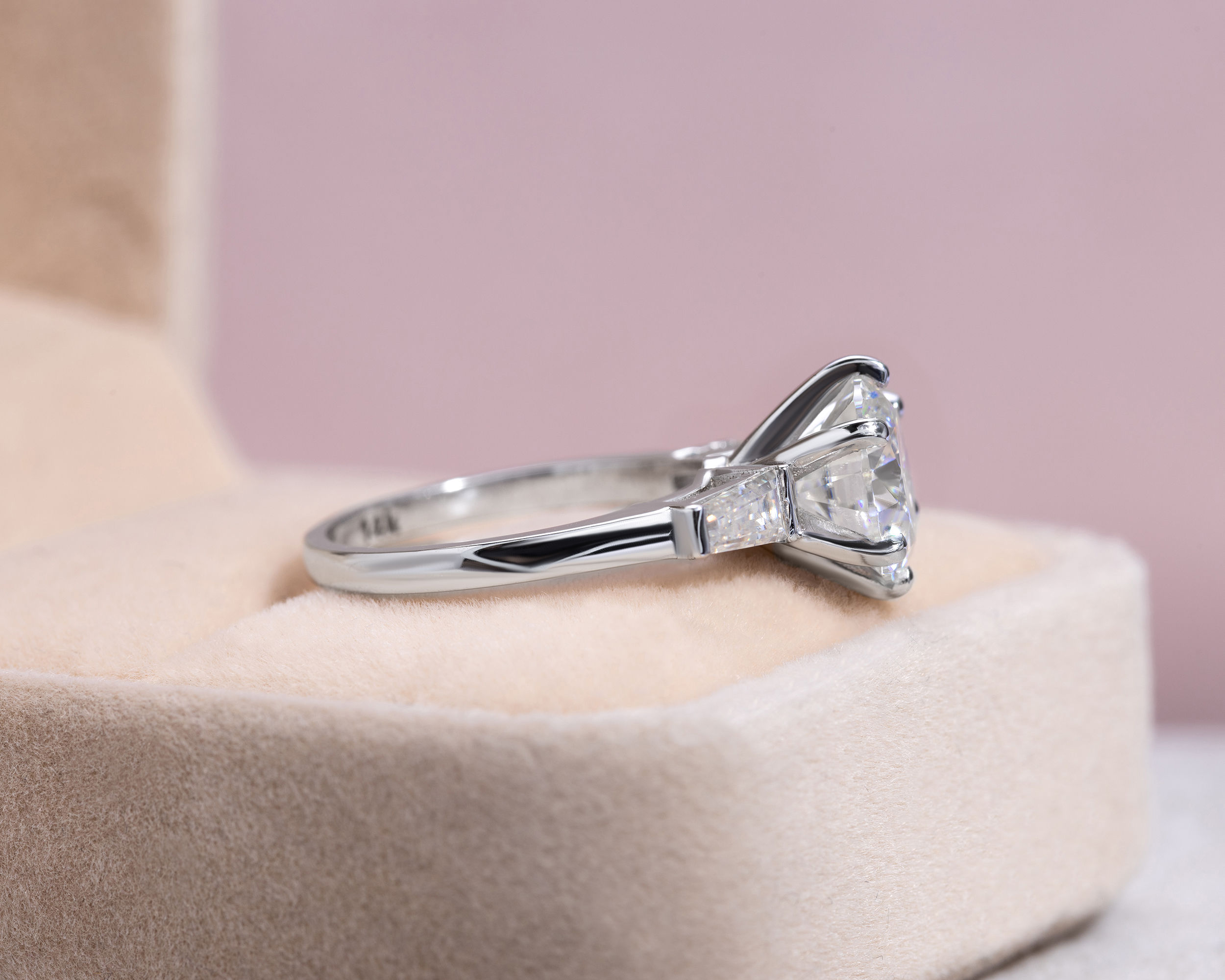 2.40 Ct Round Moissanite Engagement Ring 14K White Gold D/VVS2 Baguette