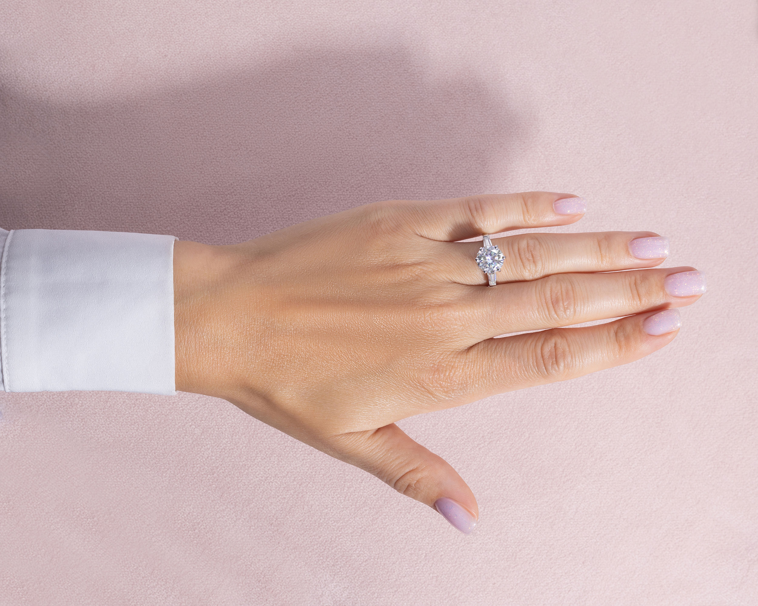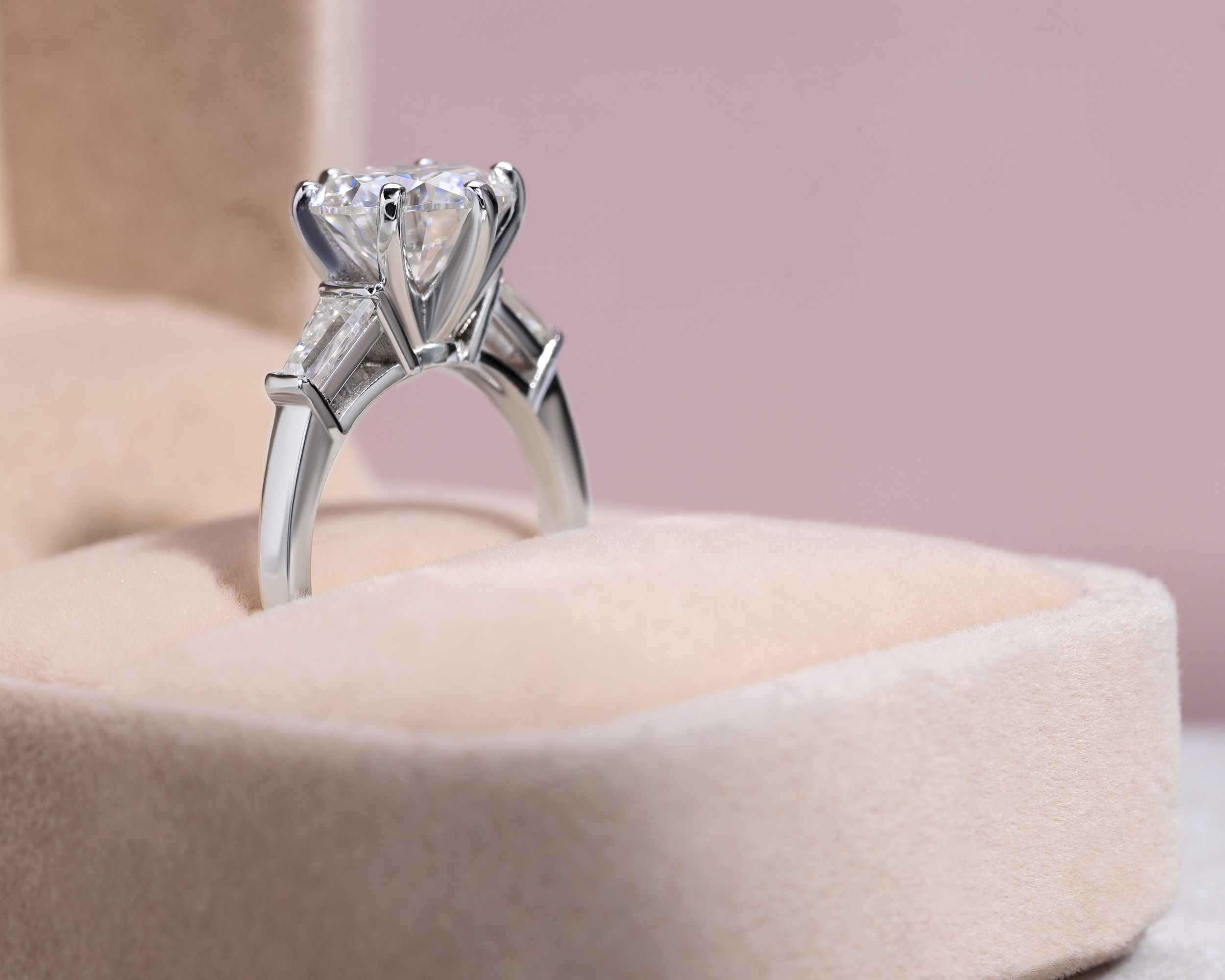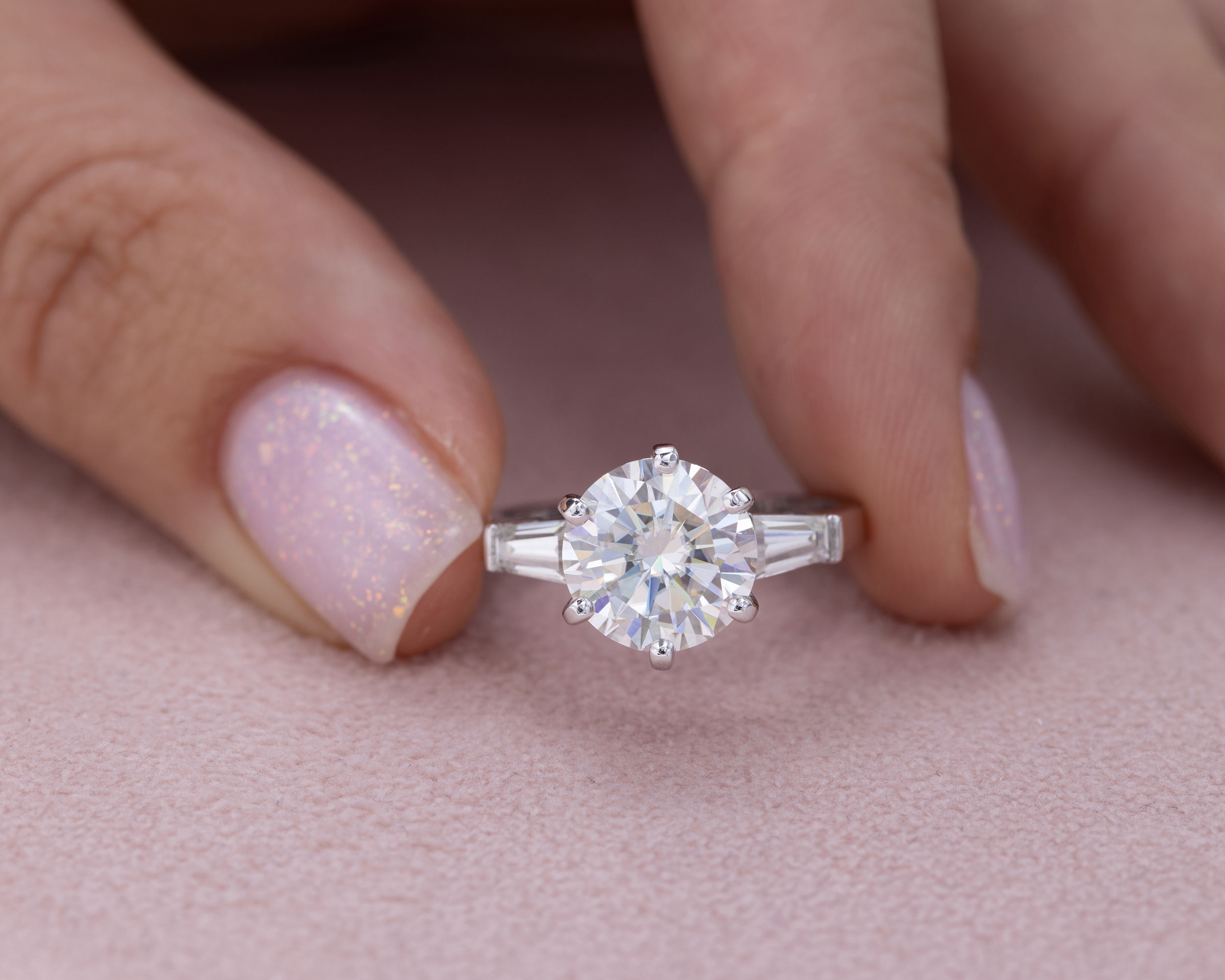2.40 Ct Round Moissanite Engagement Ring 14K White Gold D/VVS2 Baguette
