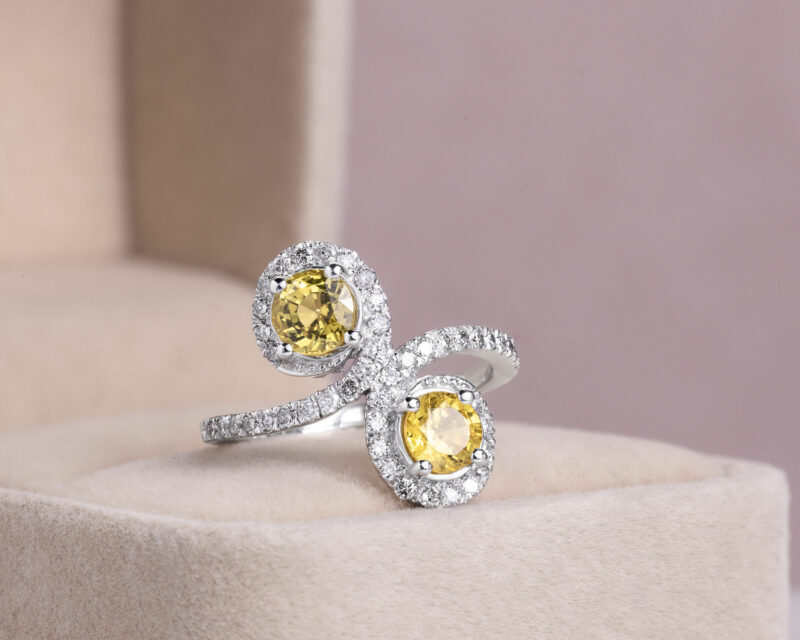 2.7 Ct Yellow Sapphire & Faint-Light Pink Diamond SI2-I1 14k White Gold Ring