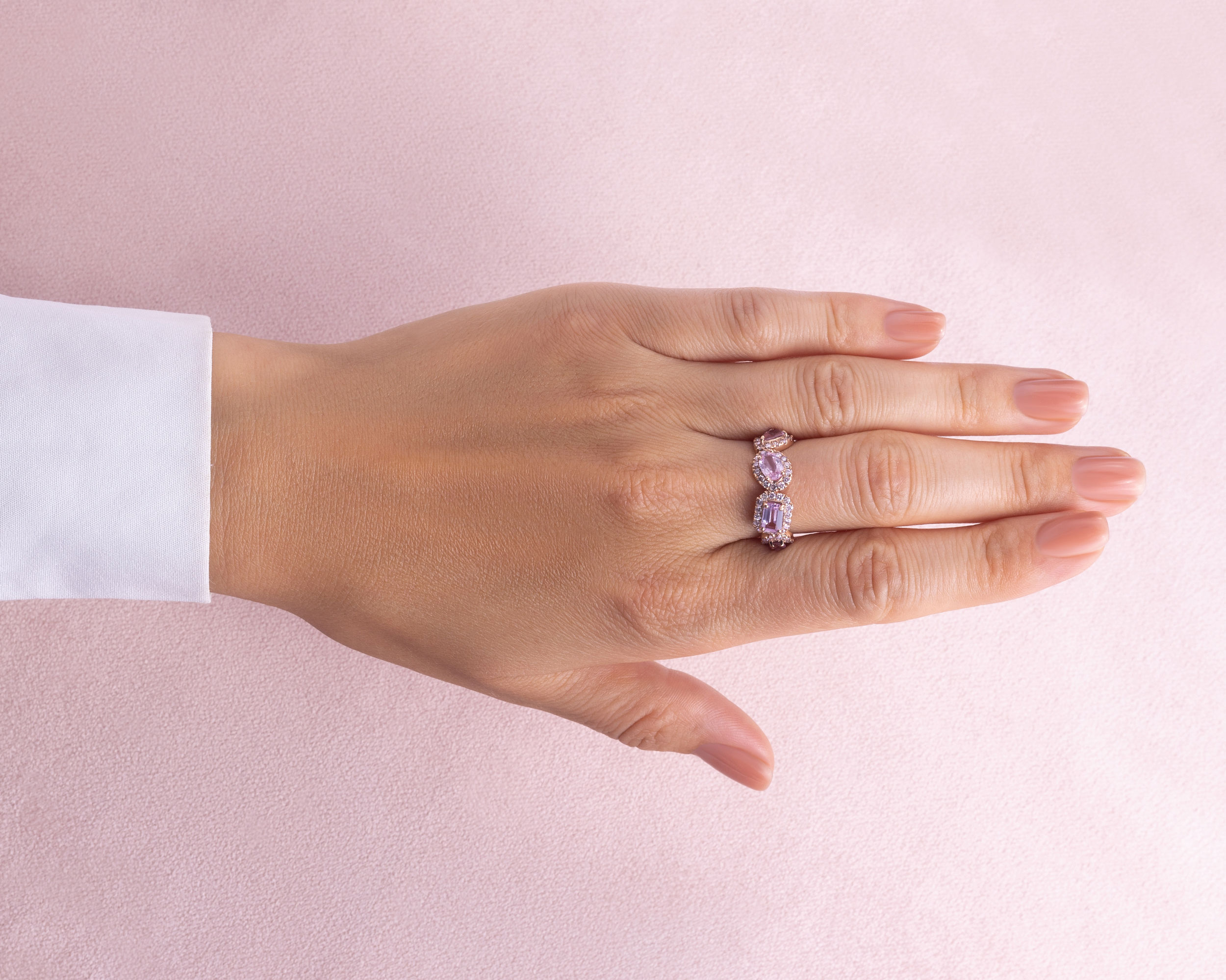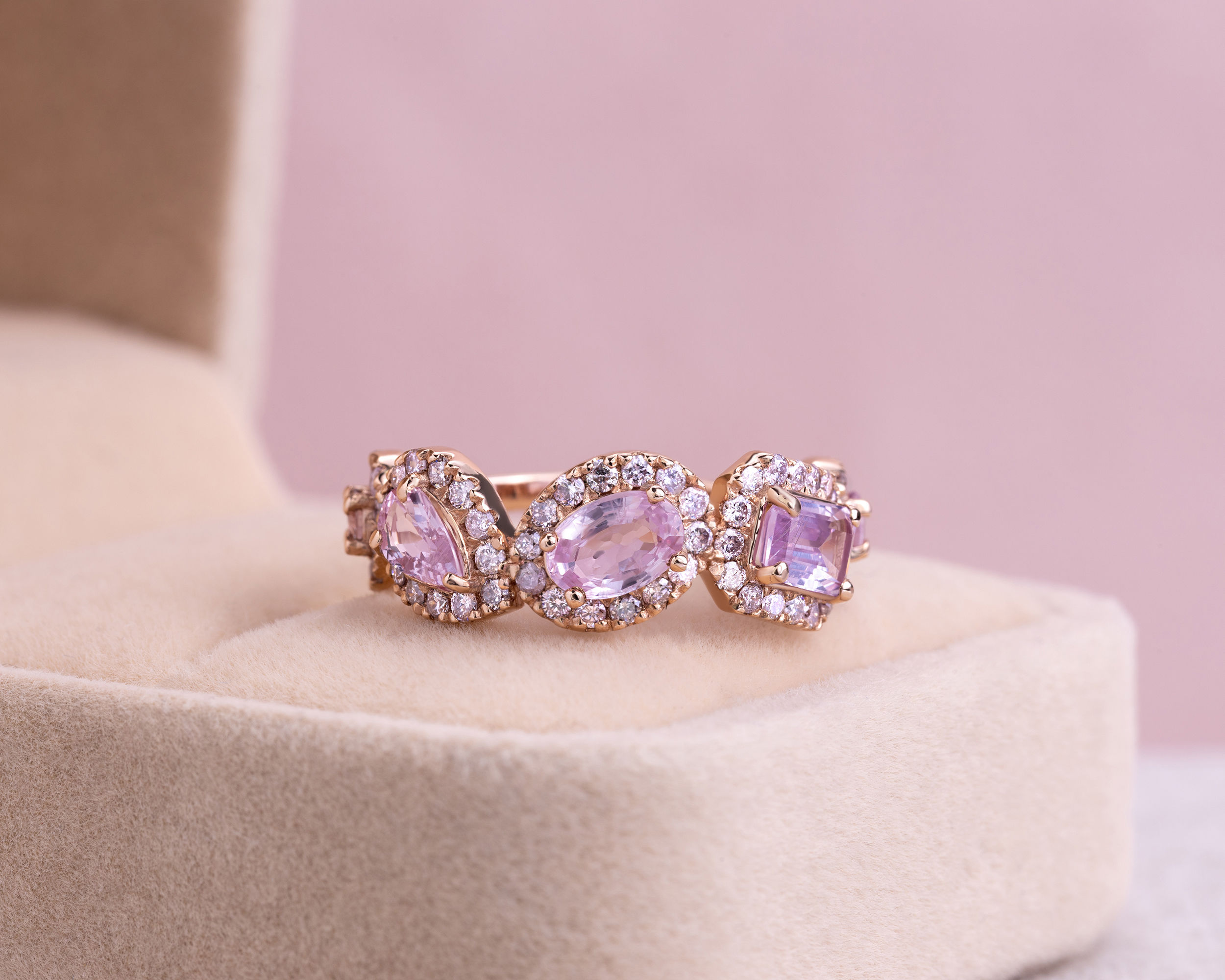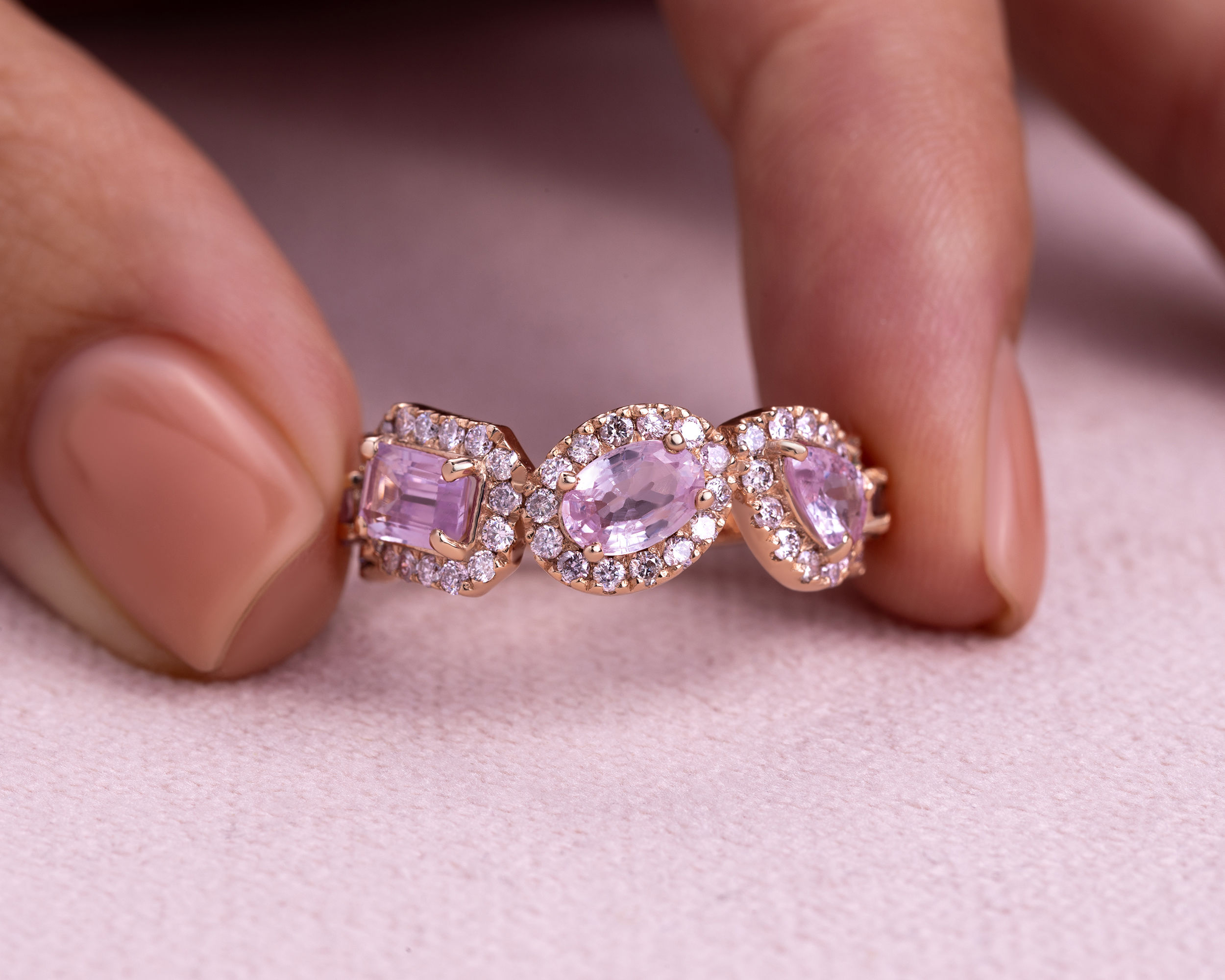 2.87 Ct Pink Sapphire Multi Shape & Faint-Light Pink Diamond 14k Rose Gold Ring