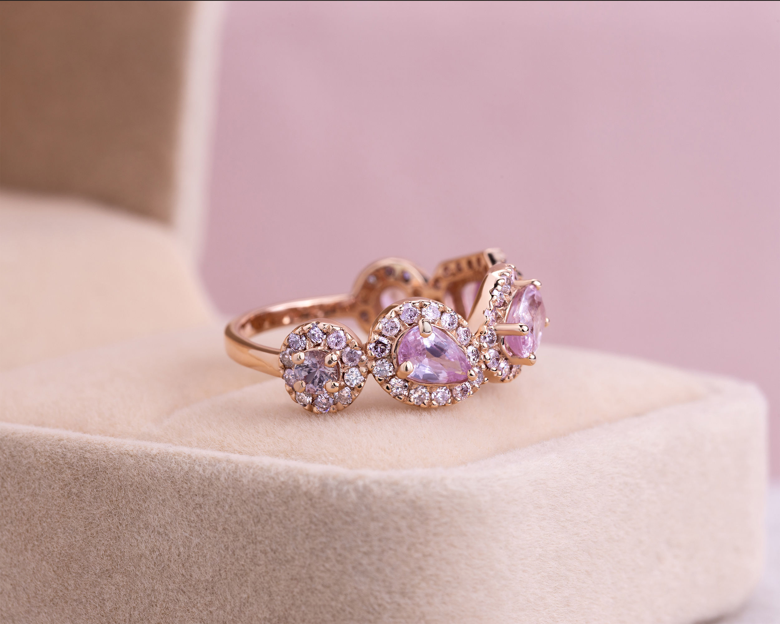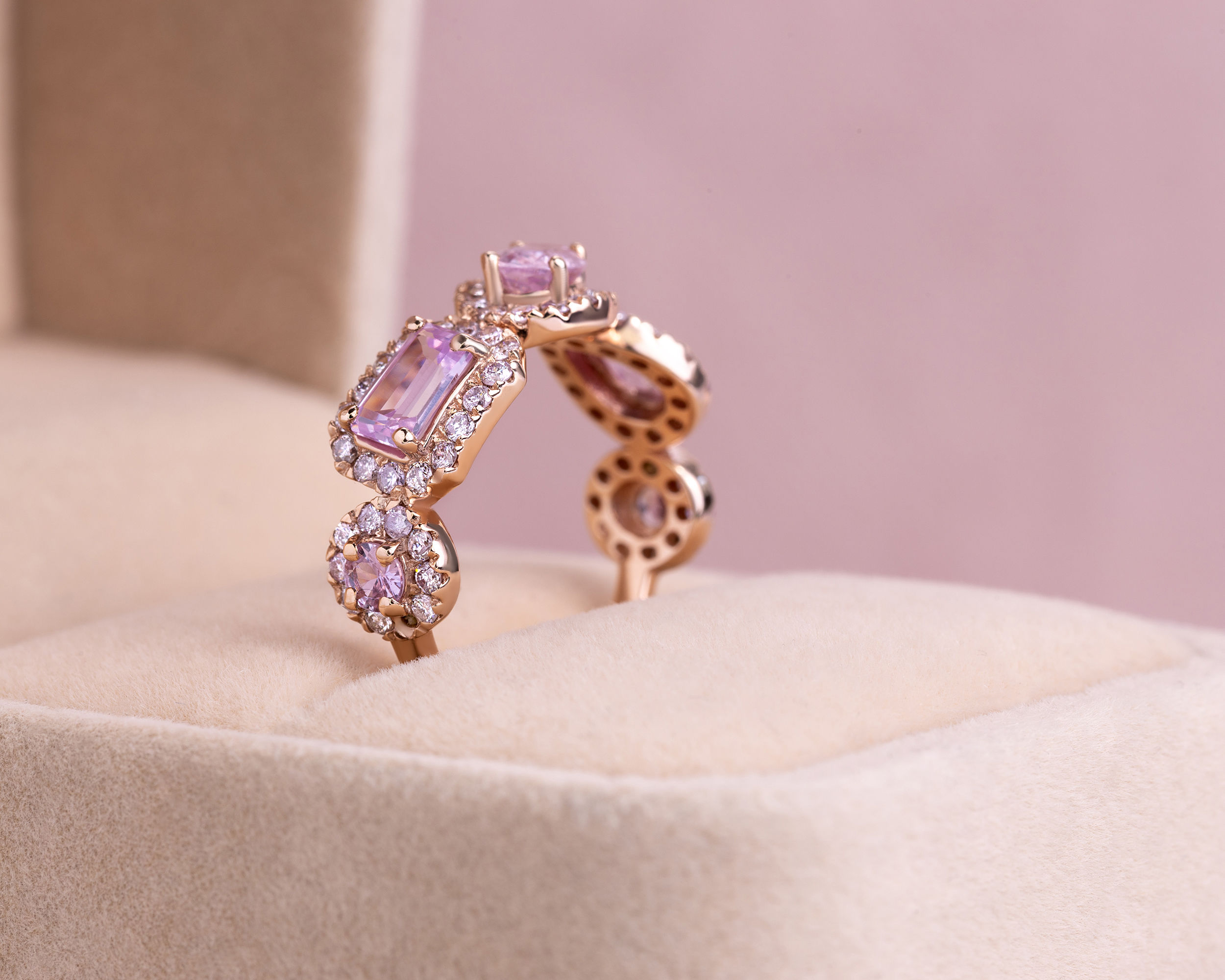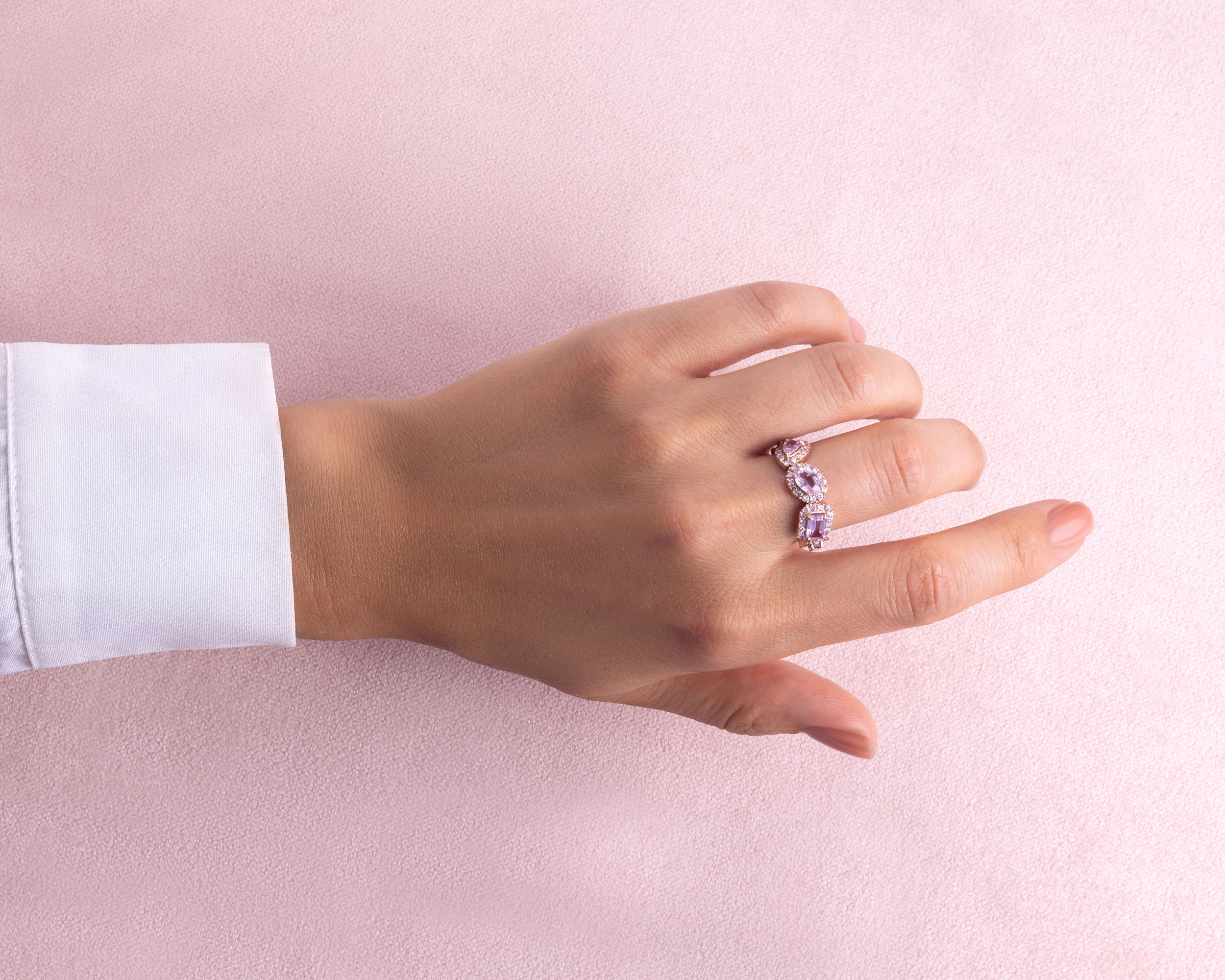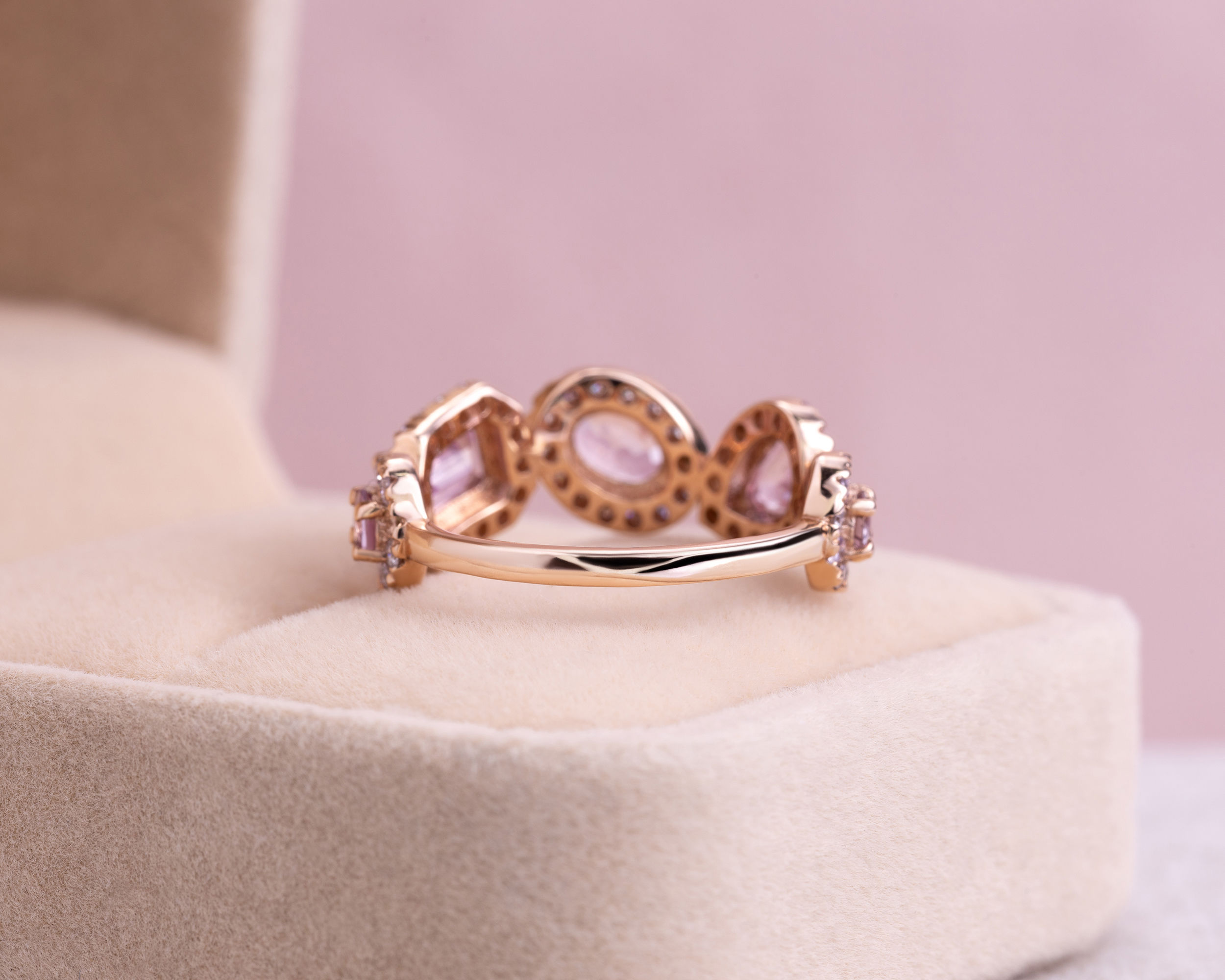 2.87 Ct Pink Sapphire Multi Shape & Faint-Light Pink Diamond 14k Rose Gold Ring