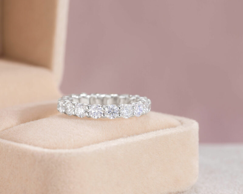 3.13 Ct Lab Diamond F/VS1-VS2 Round Brilliant Eternity Engagement Ring 14k White Gold
