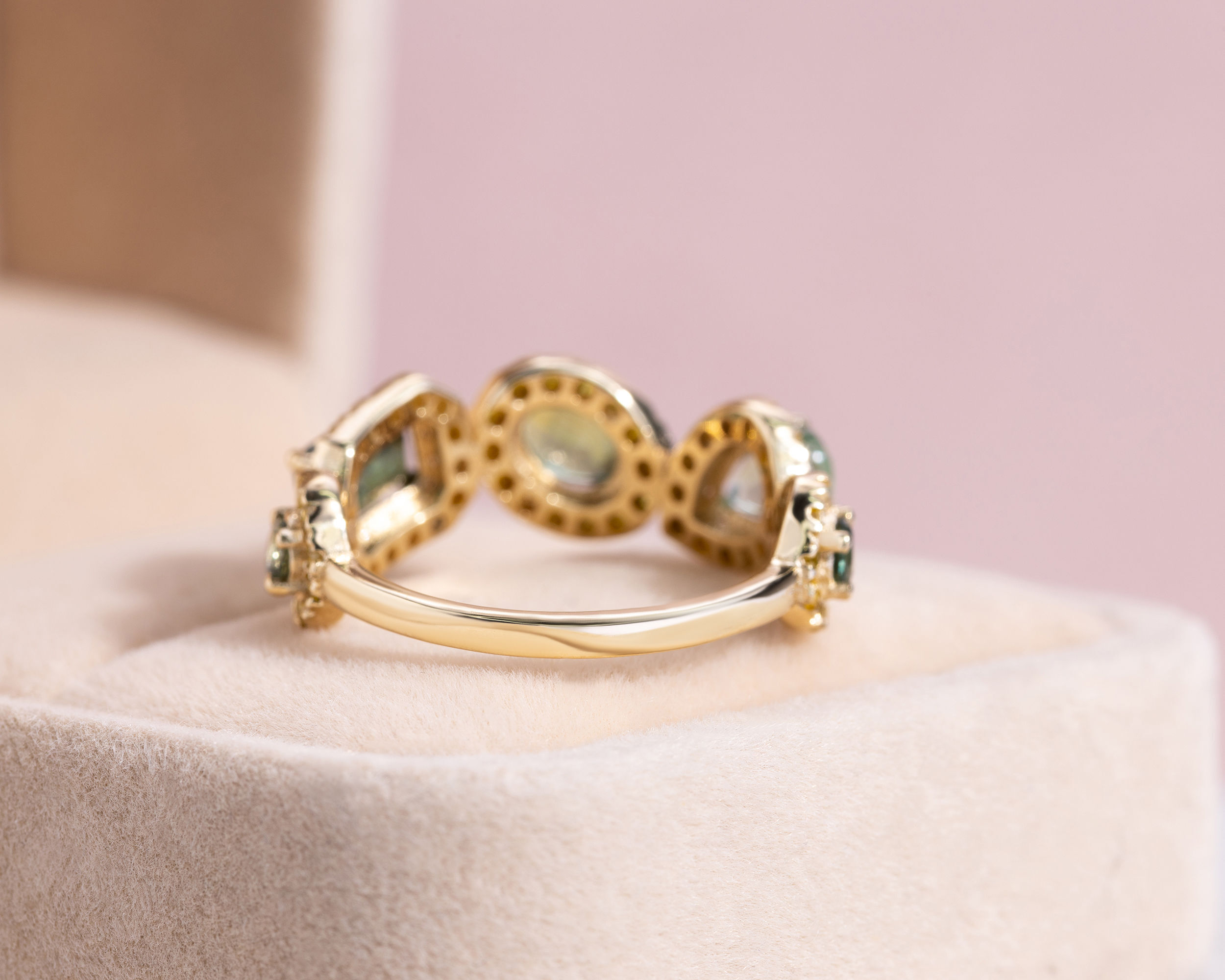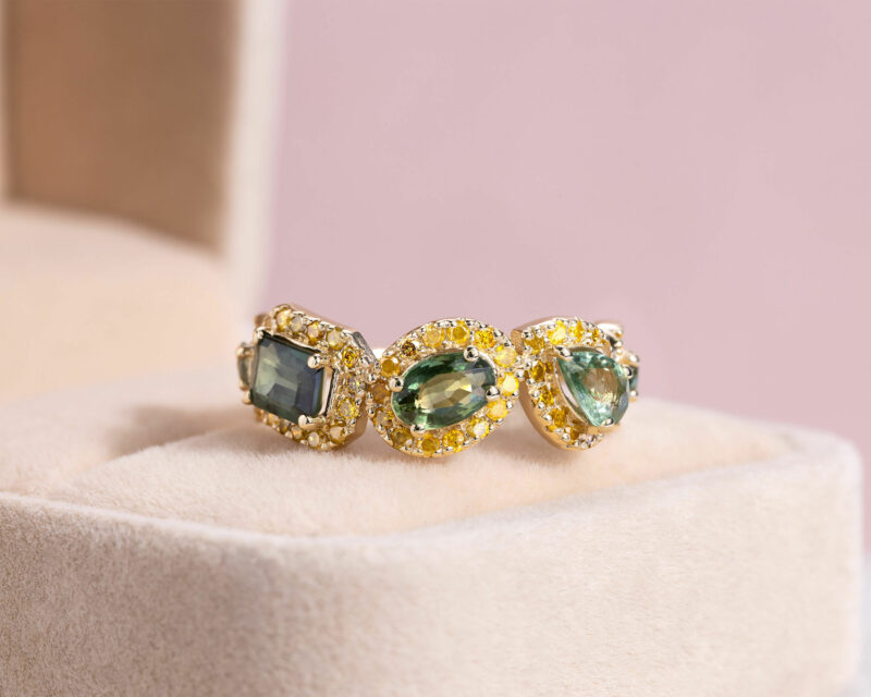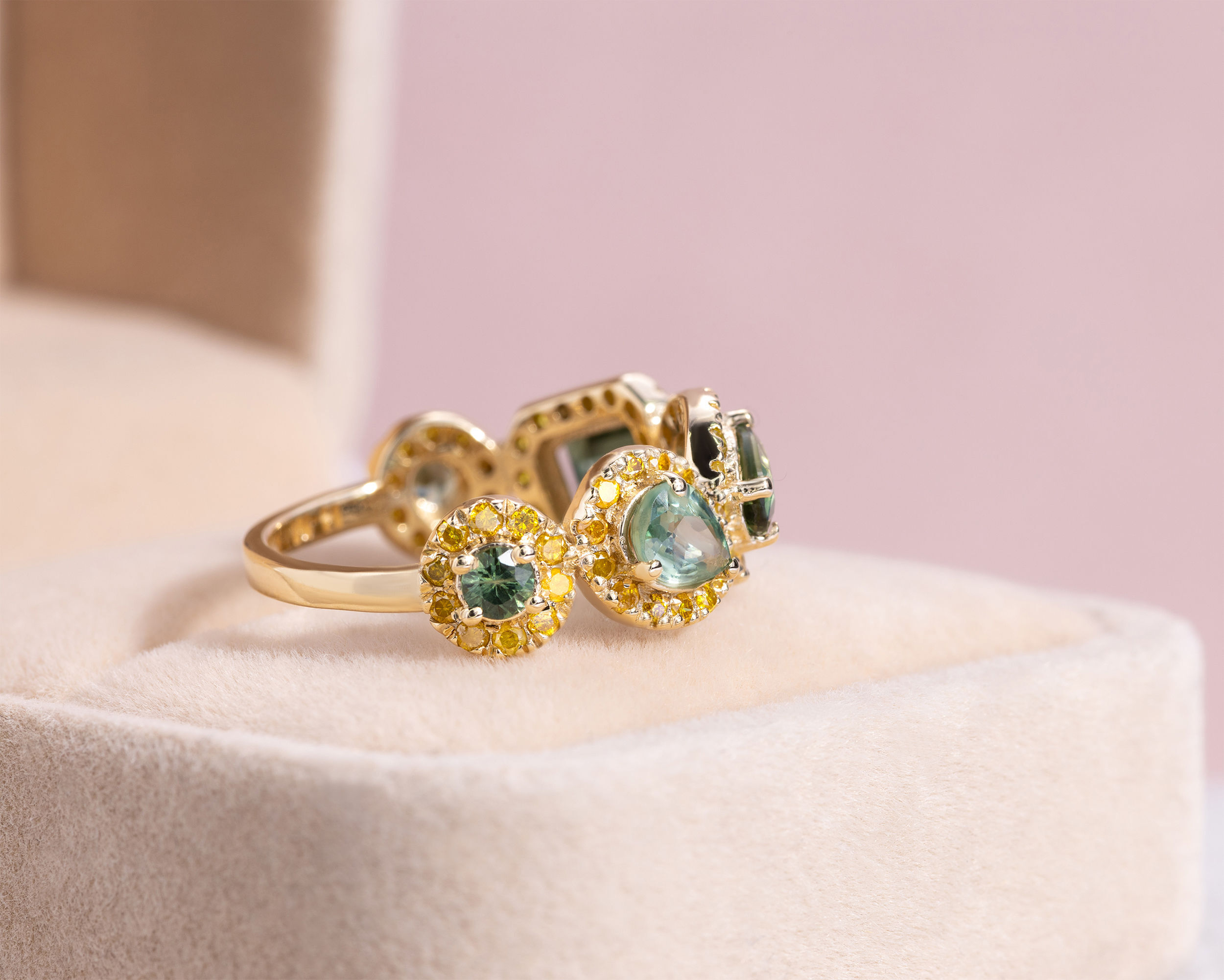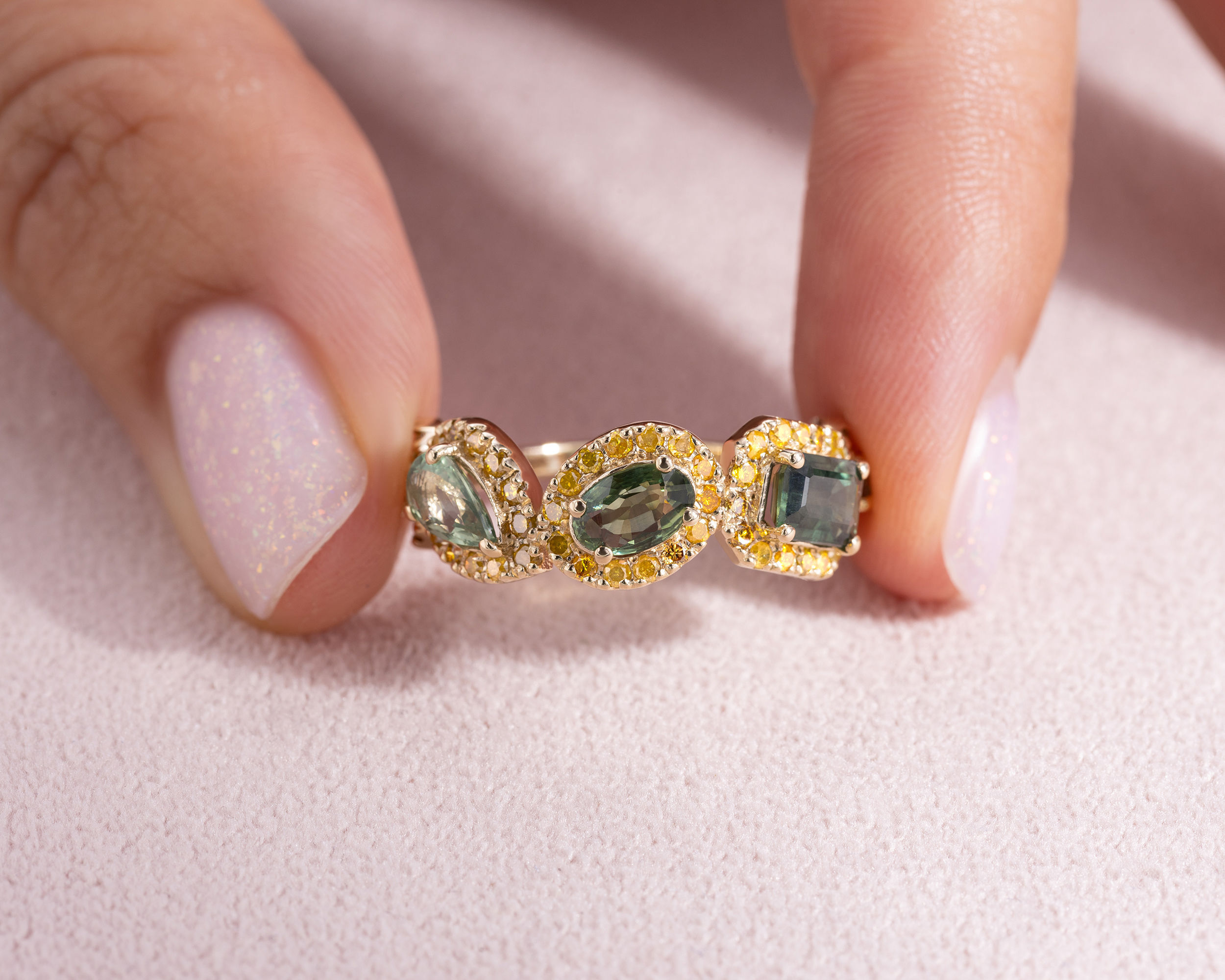 3.3 Ct Green Sapphire & Natural Vivid Yellow Diamond SI2-I2 14k Yellow Gold Ring