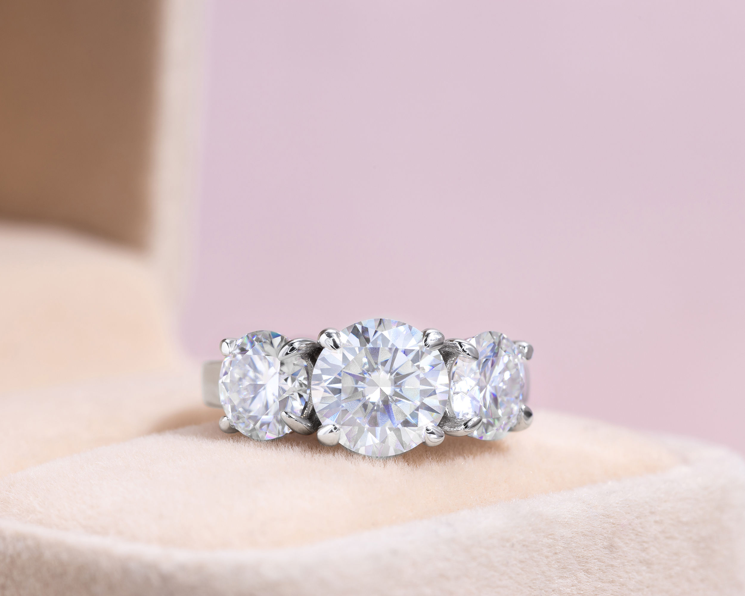 4 Carat Moissanite Three Stone Round Cut Engagement Ring 14K White Gold D/VVS2