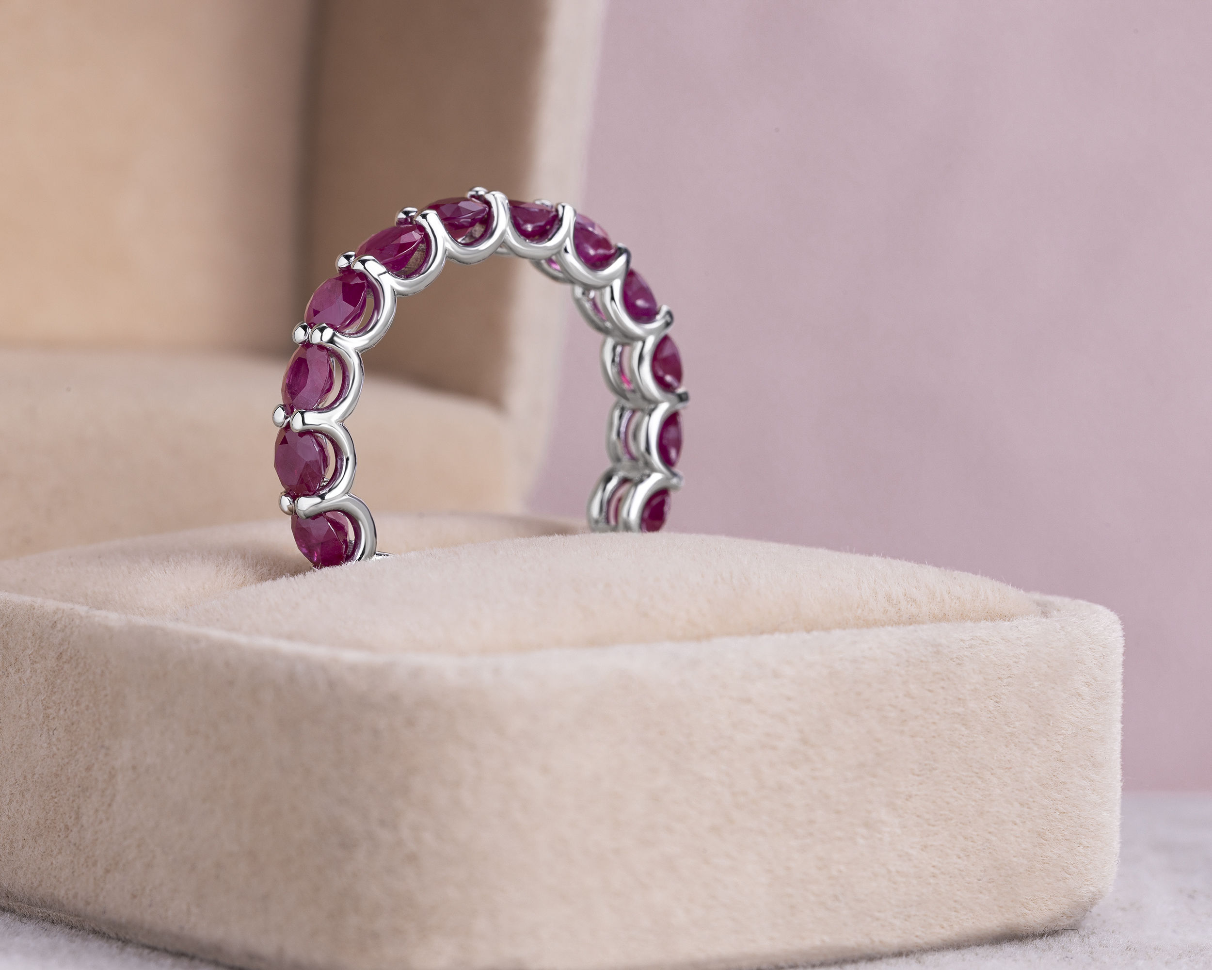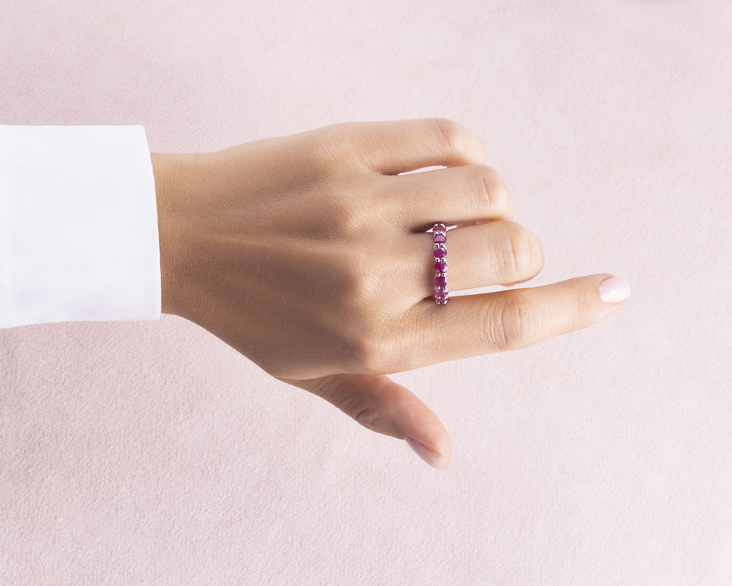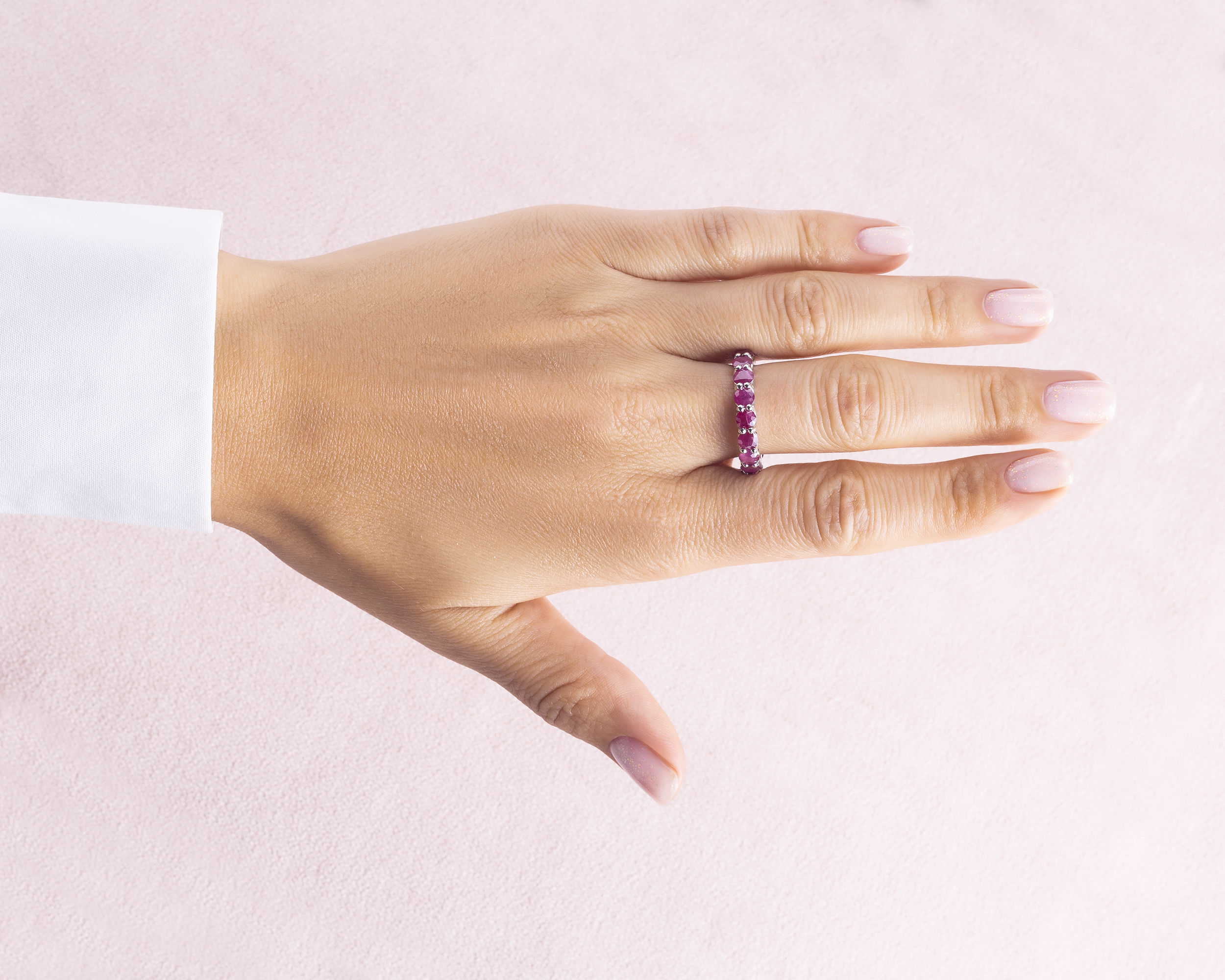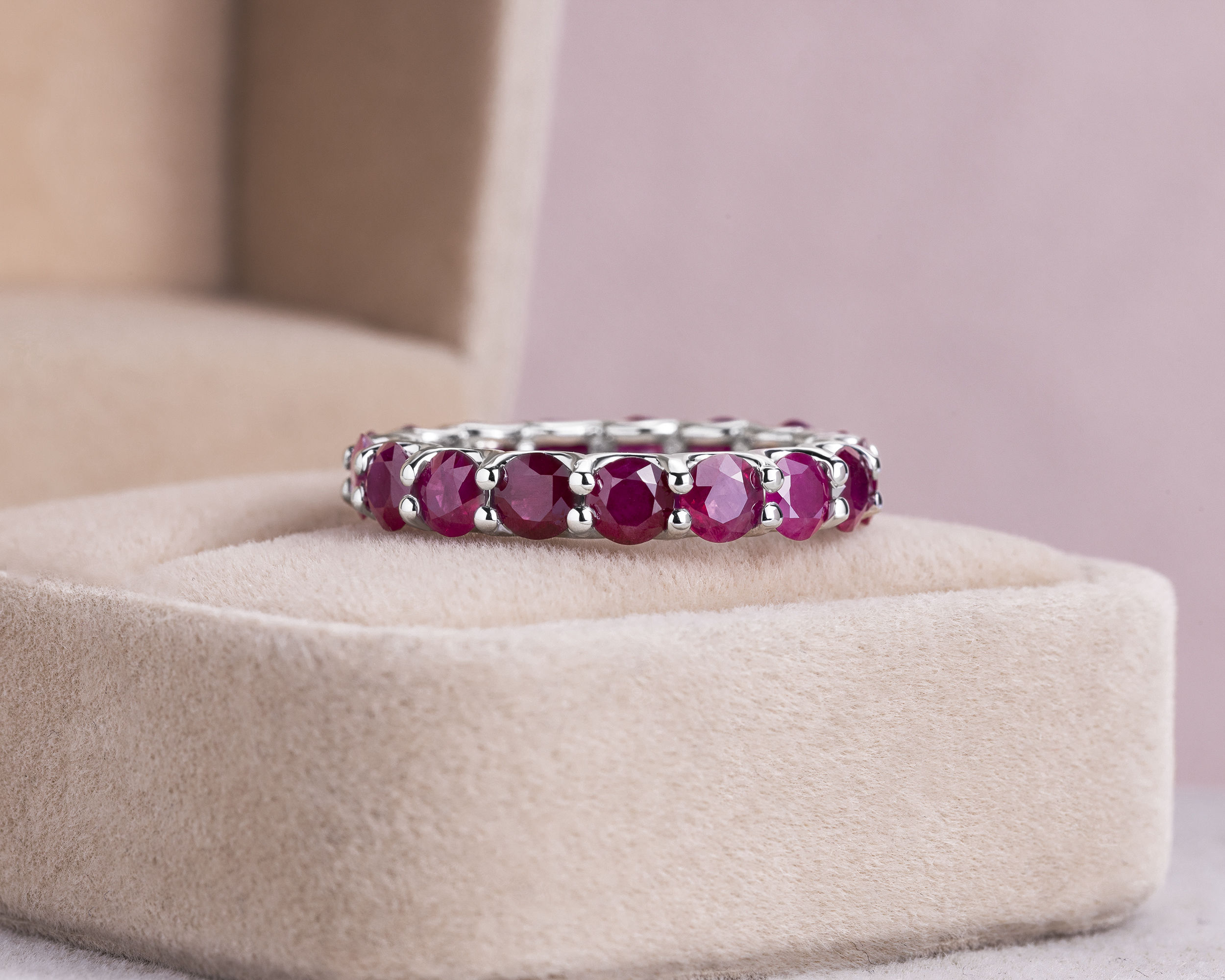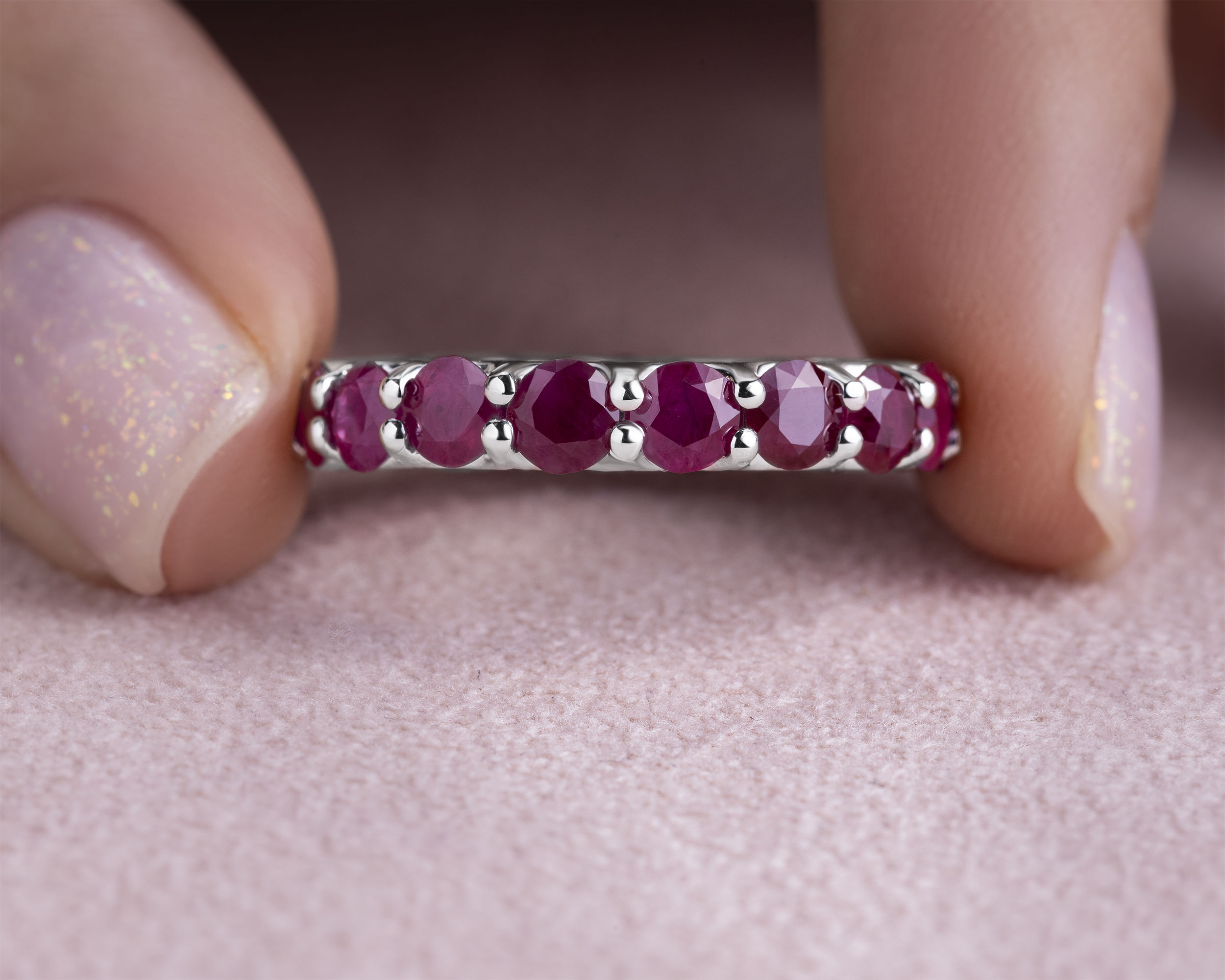 6 Carat Red Ruby Eternity Ring 14k Solid White Gold Round Brilliant Transparent