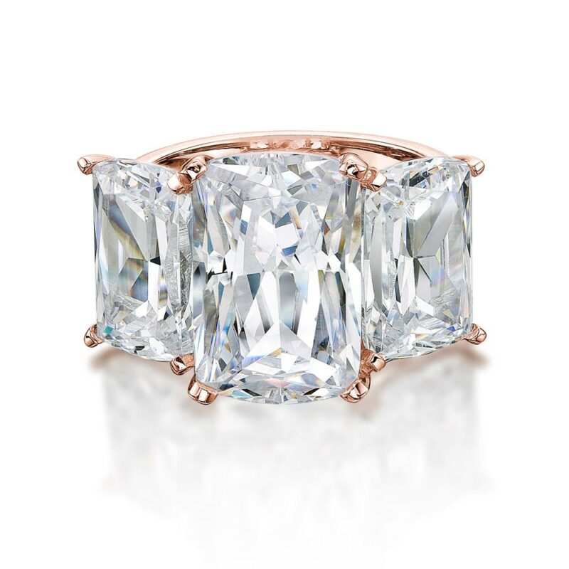 Aurora Three stone ring with 17.17 carats* of diamond simulants in 10 carat rose gold