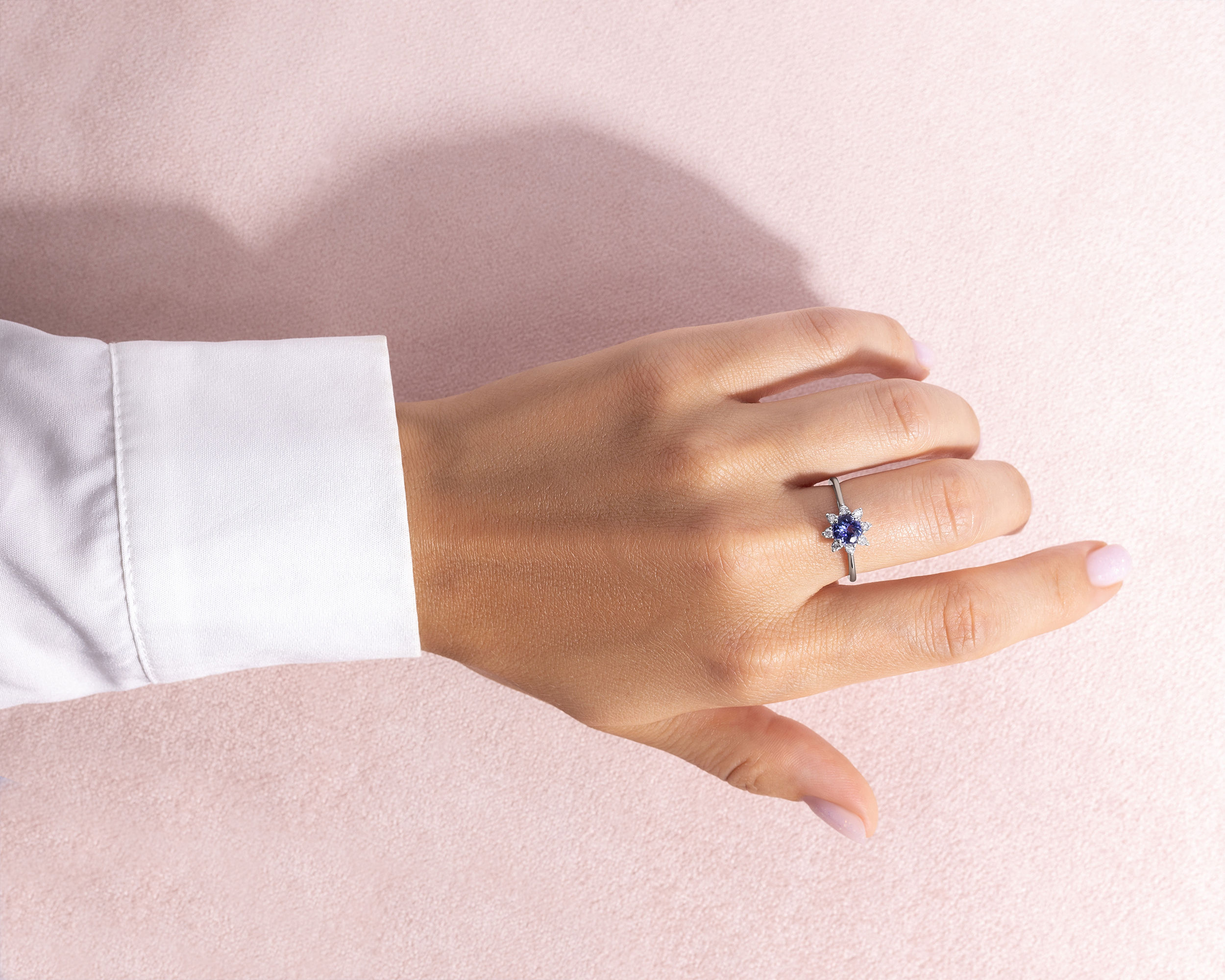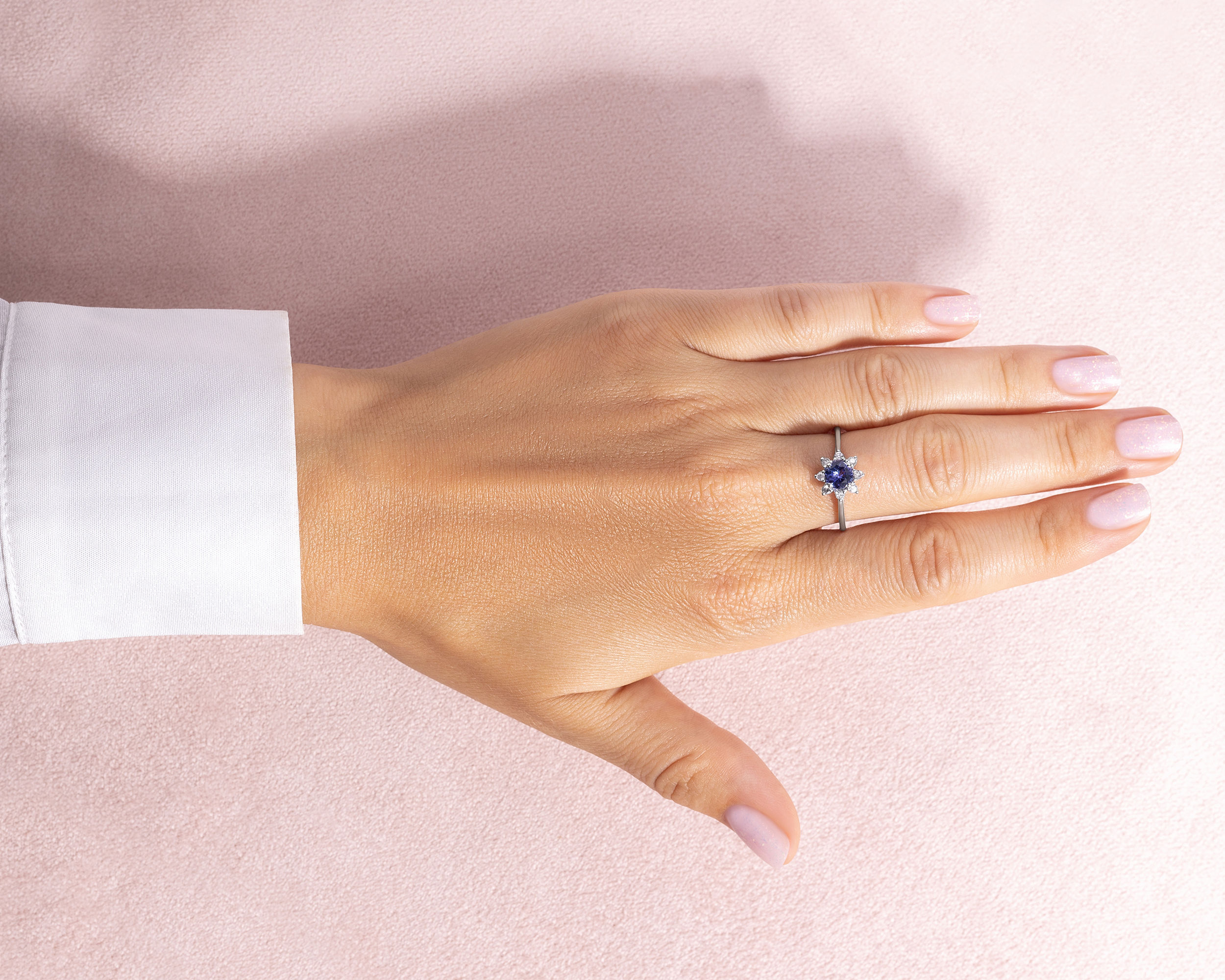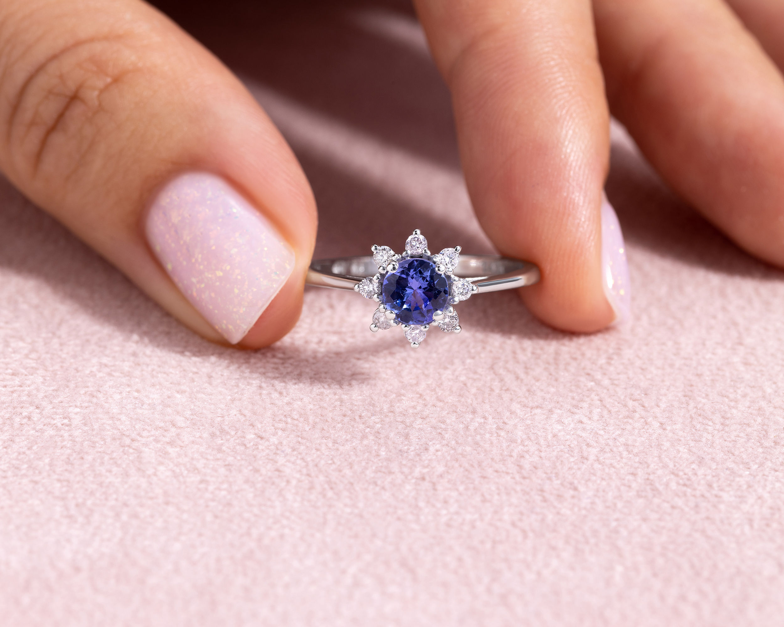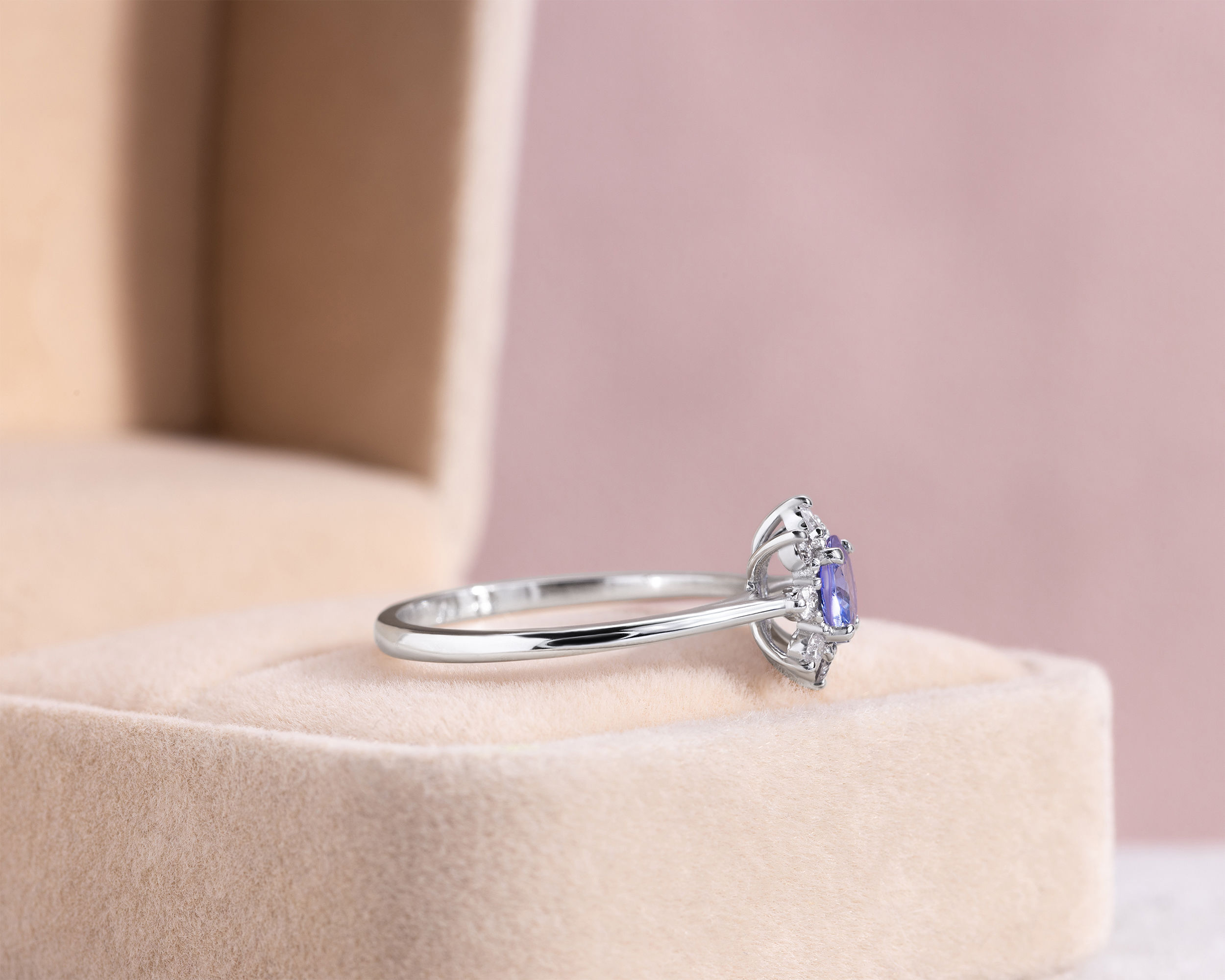 Bluish Purple Tanzanite & Natural Faint-Light Pink Diamond 0.95 Ct 14k White Gold Ring
