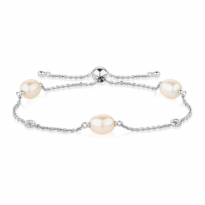 Cultured freshwater pearl slider bracelet in sterling silver