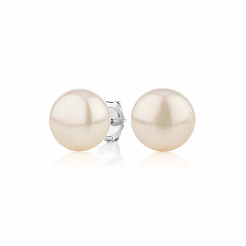 Cultured freshwater pearl 9.5mm stud earrings in sterling silver