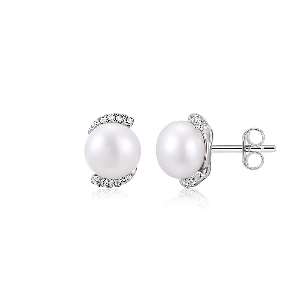 Cultured freshwater pearl stud earrings in sterling silver
