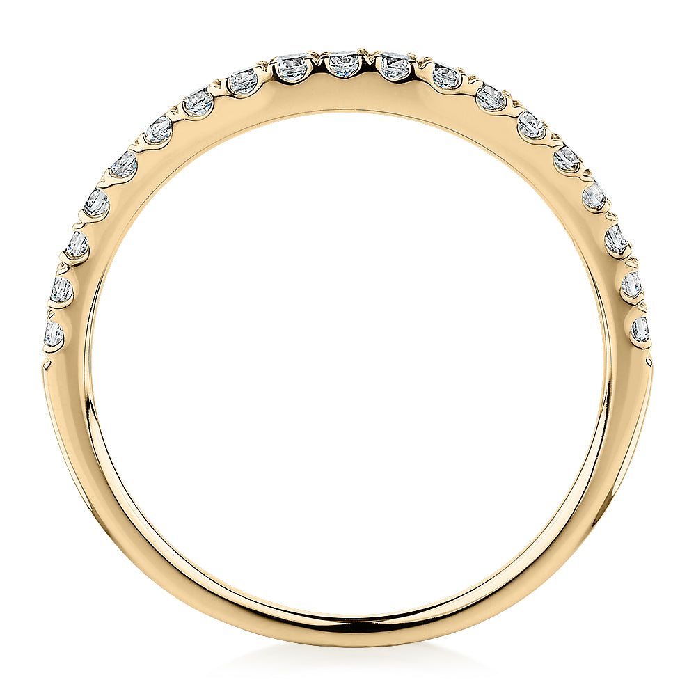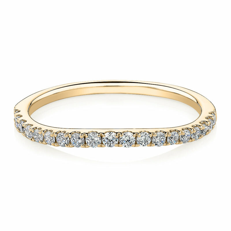 Curved wedding or eternity band with 0.25 carats* of diamond simulants in 10 carat yellow gold