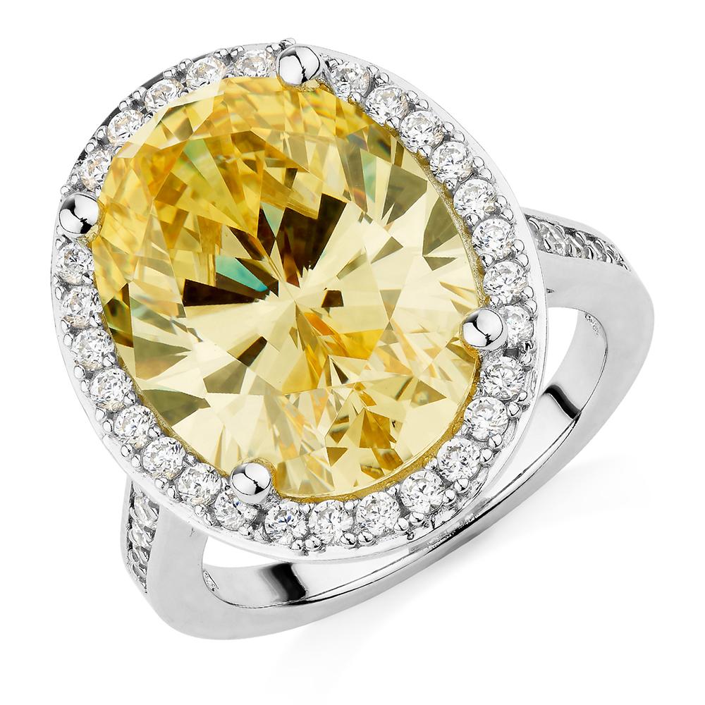 Dress ring with 10.1 carats* of diamond simulants in sterling silver