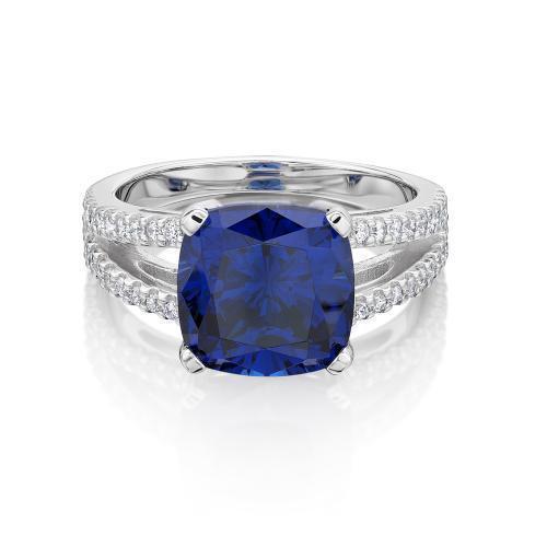 Dress ring with 10x10mm tanzanite simulant and 0.4 carats* of diamond simulants in 10 carat white gold