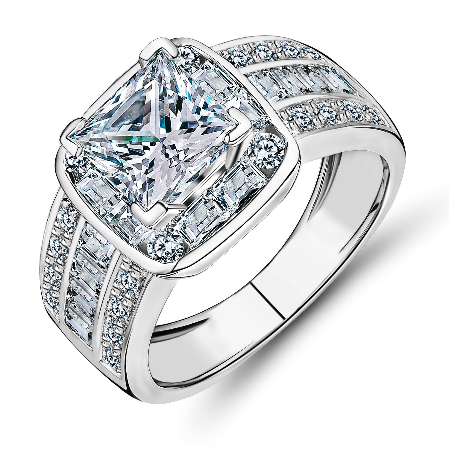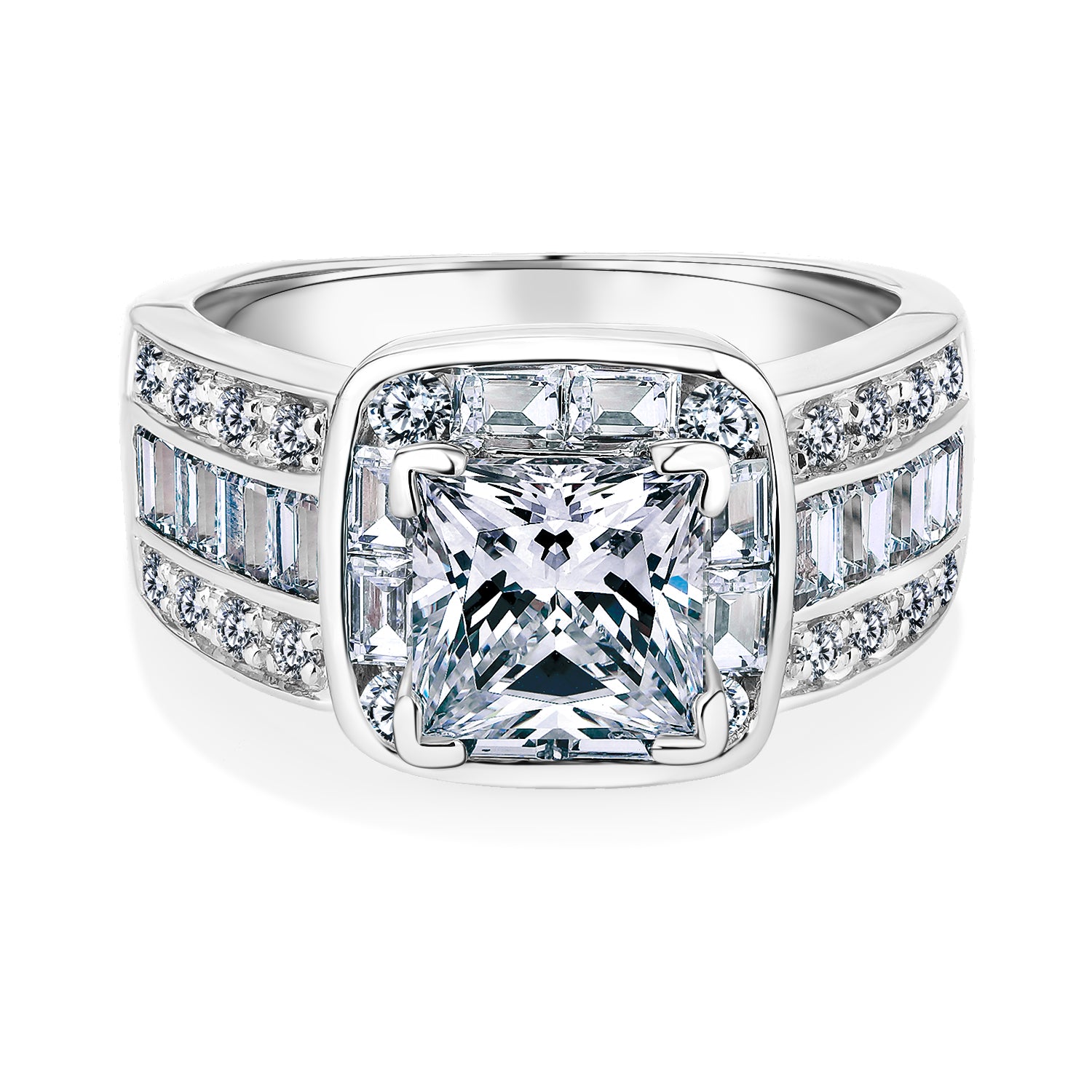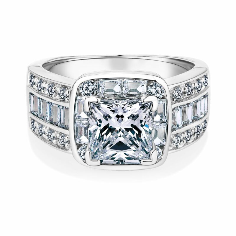 Dress ring with 3.6 carats* of diamond simulants in 10 carat white gold