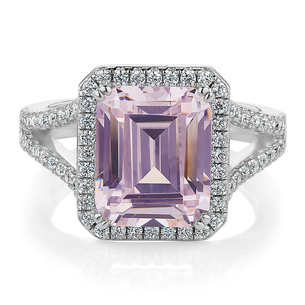 Dress ring with 5.69 carats* of diamond simulants in sterling silver