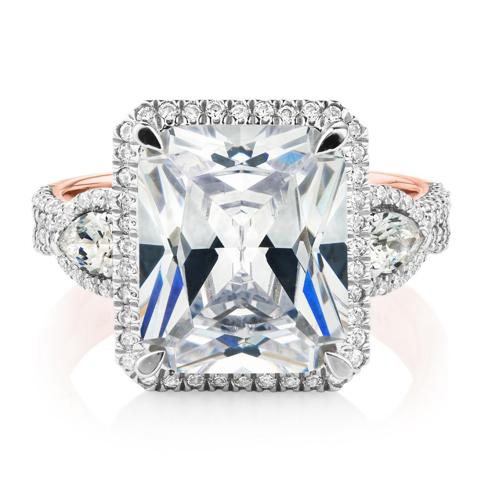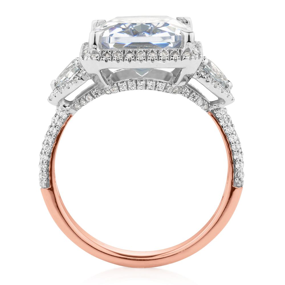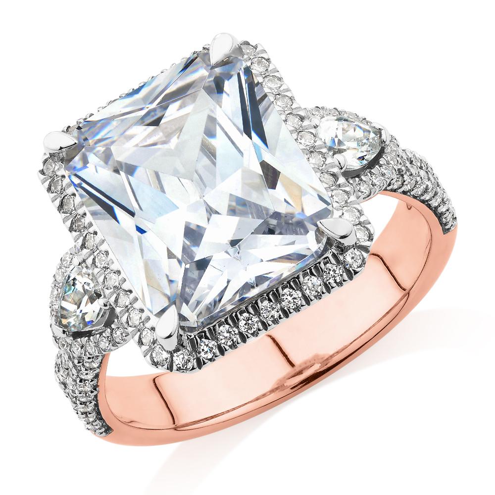 Dress ring with 6.93 carats* of diamond simulants in 10 carat rose and white gold