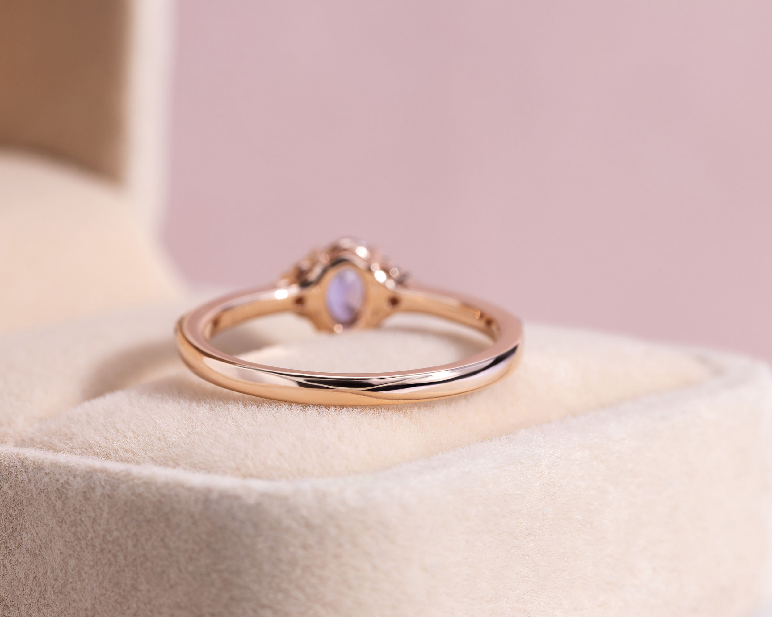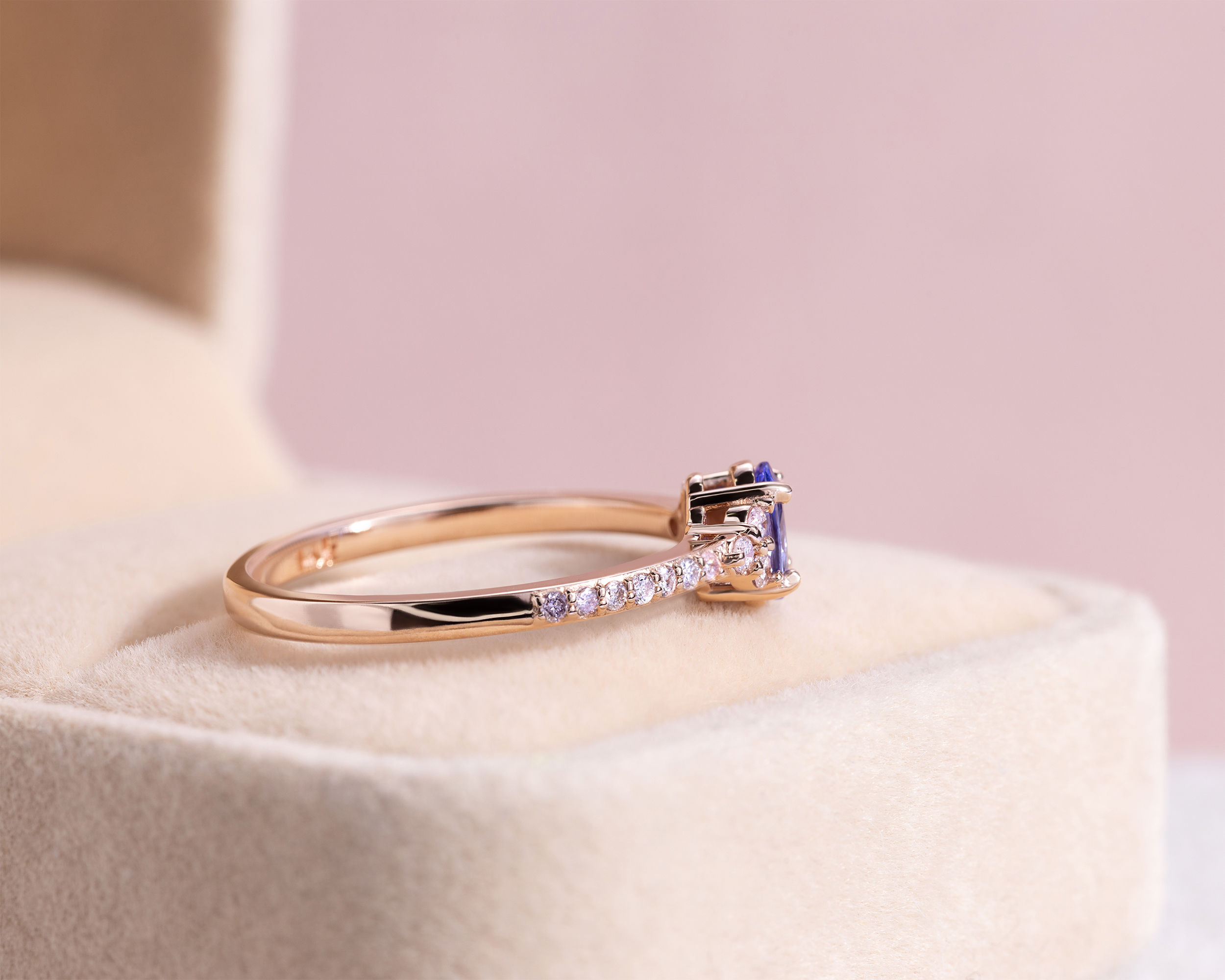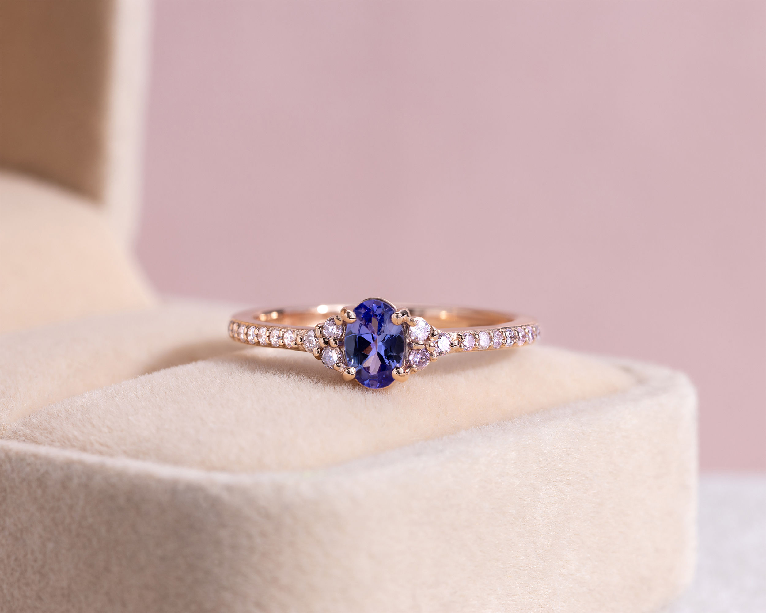 Natural Bluish Purple Tanzanite & Faint-Light Pink Diamond 0.72 Ct 14k Rose Gold Ring