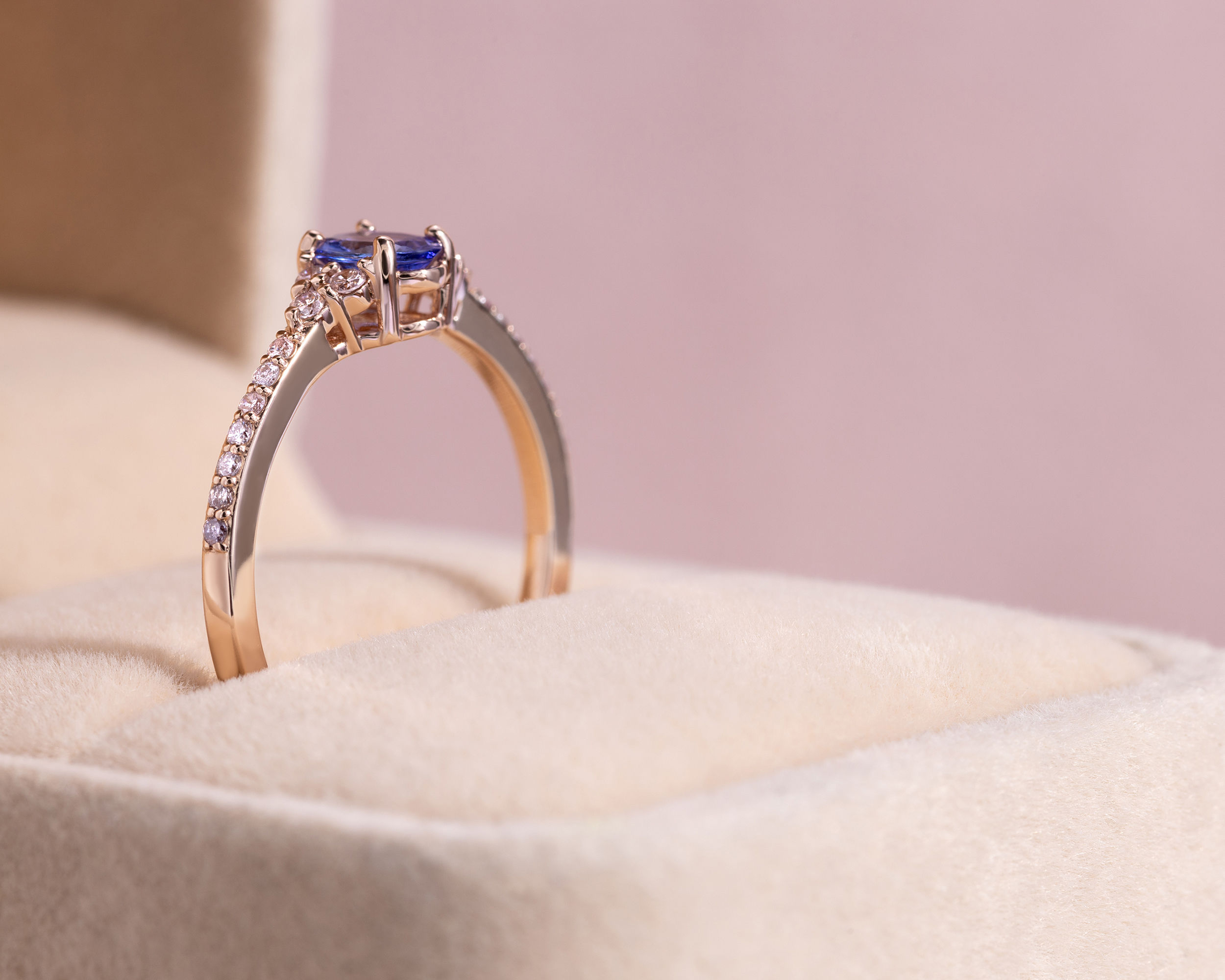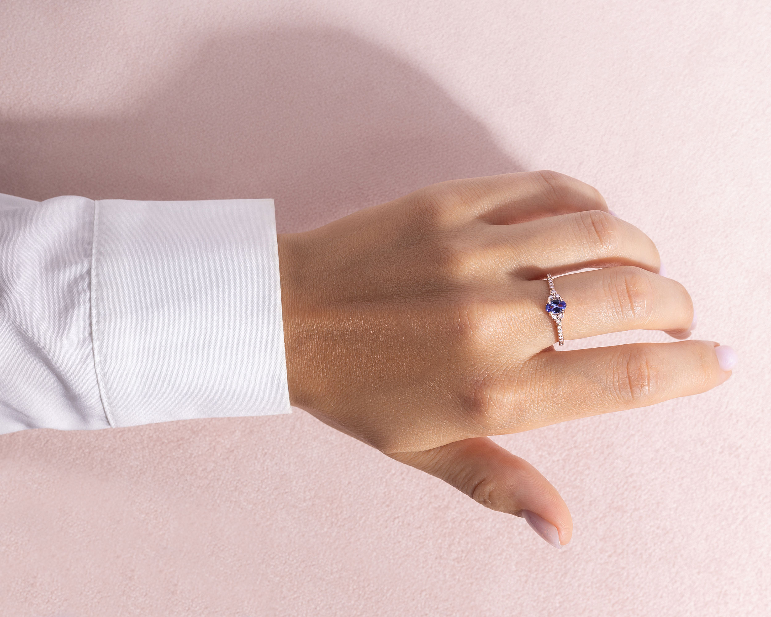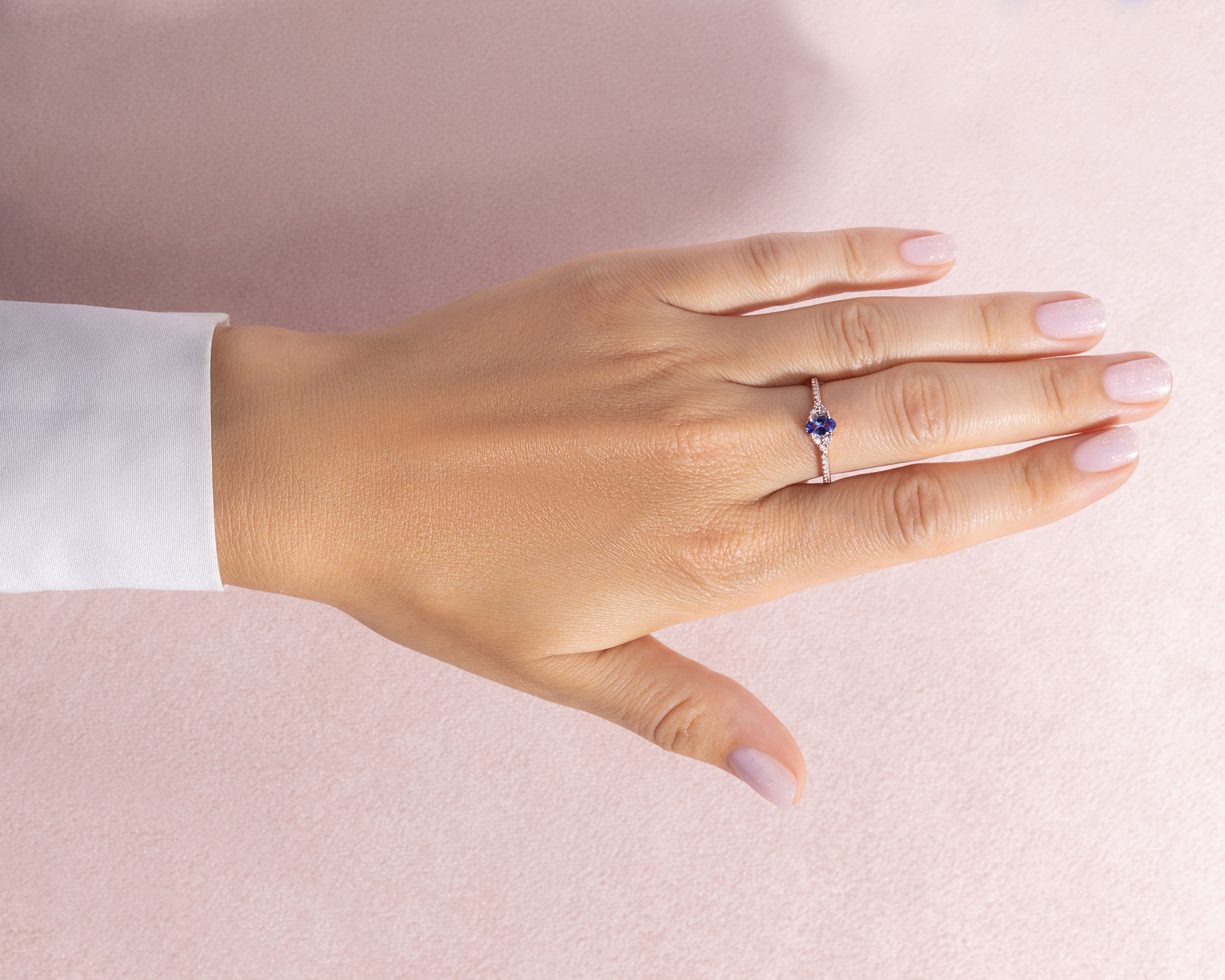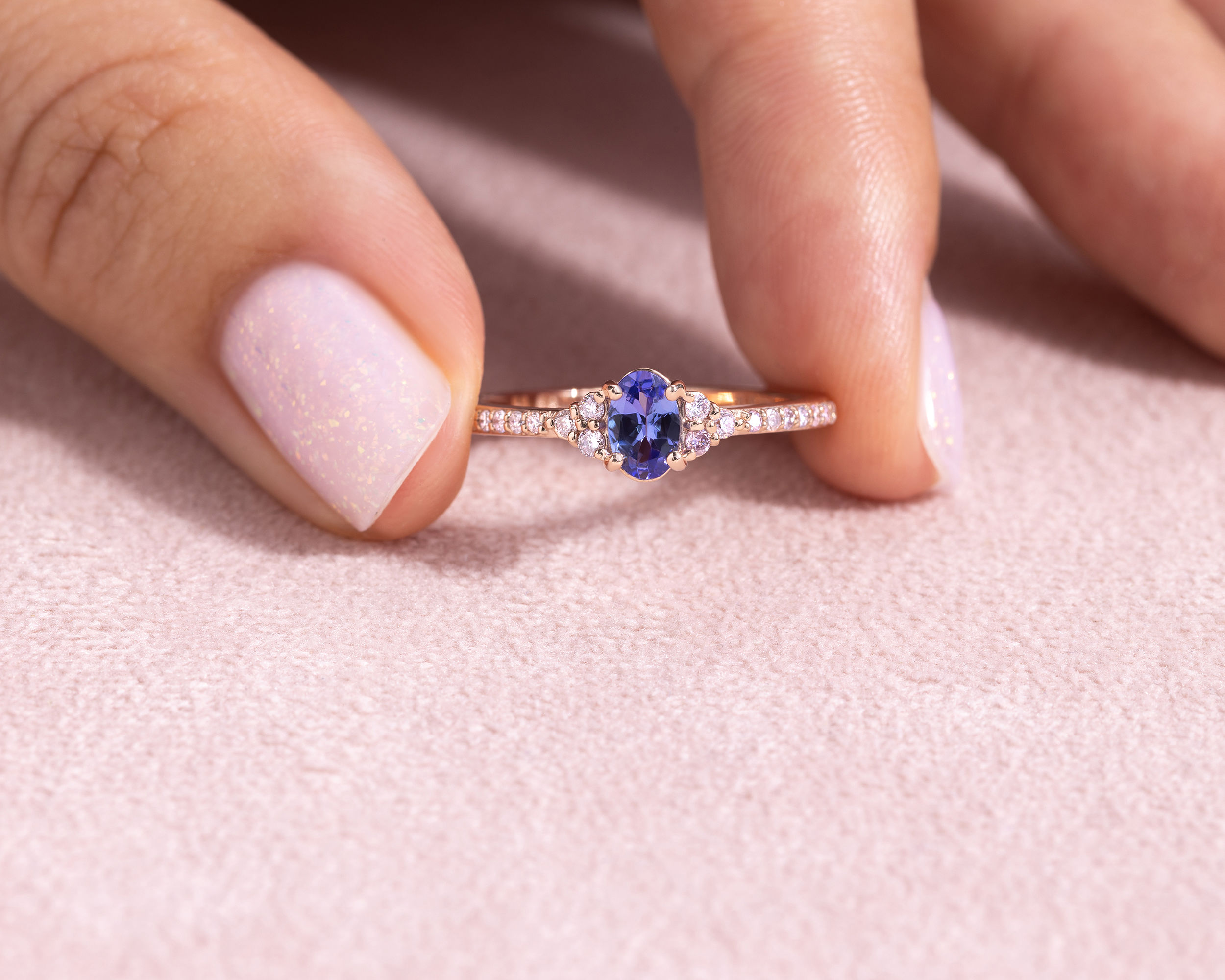 Natural Bluish Purple Tanzanite & Faint-Light Pink Diamond 0.72 Ct 14k Rose Gold Ring