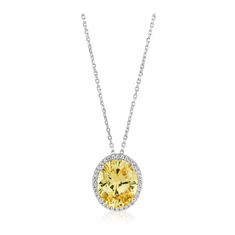 Oval and Round Brilliant Halo necklace with 5.32 carats* of diamond simulants in sterling silver