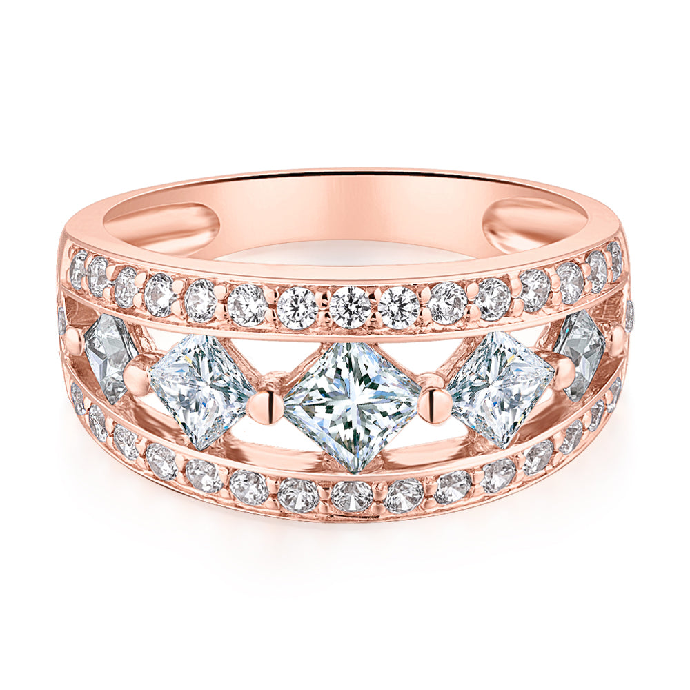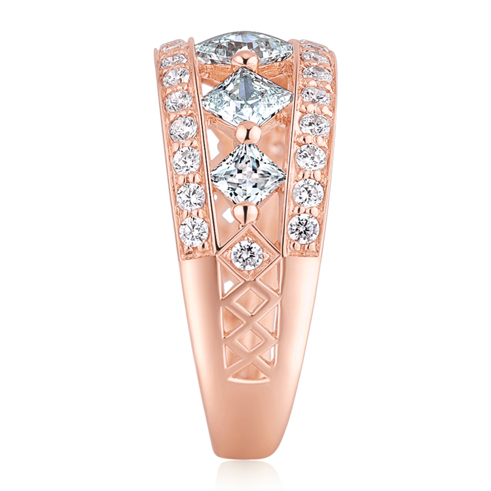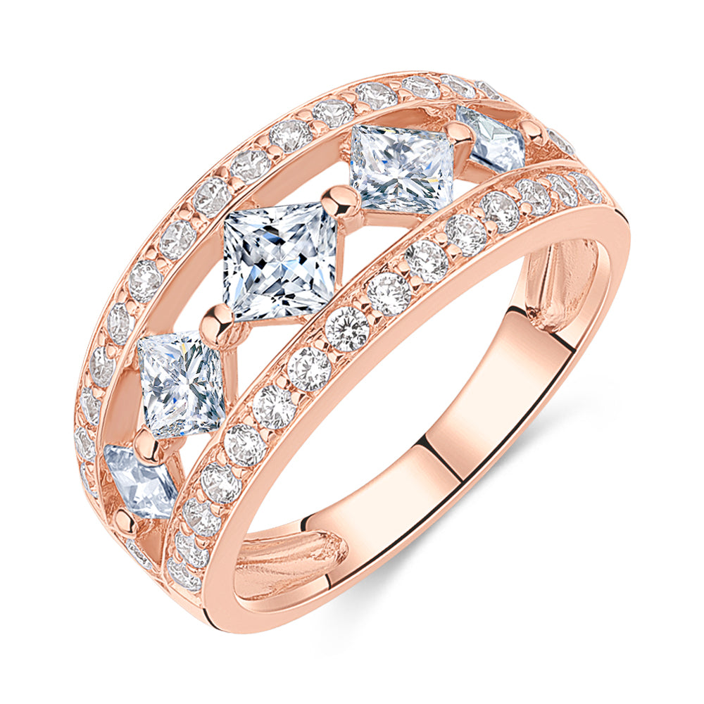 Princess Cut and Round Brilliant Dress ring with 1.71 carats* of diamond simulants in 10 carat rose gold
