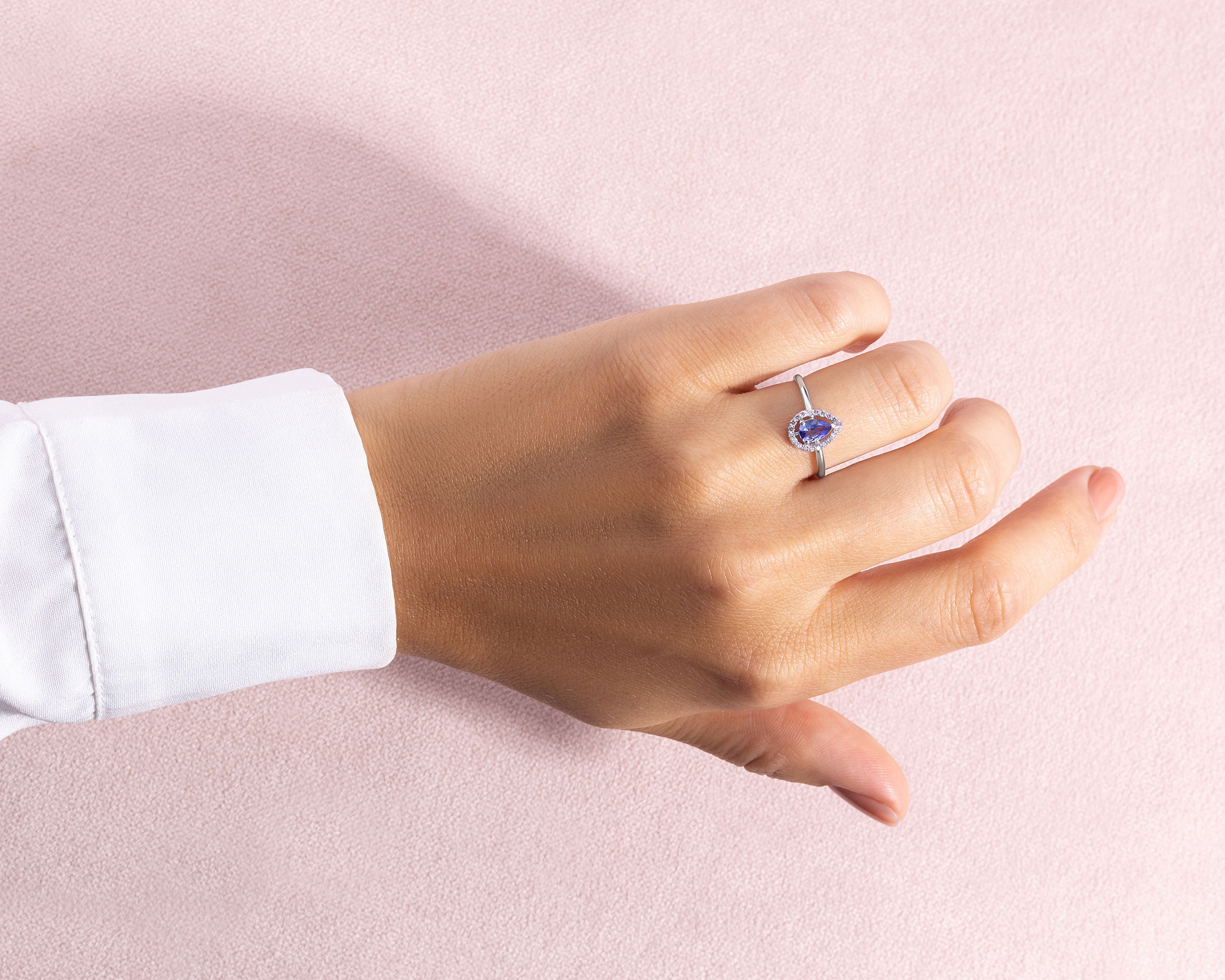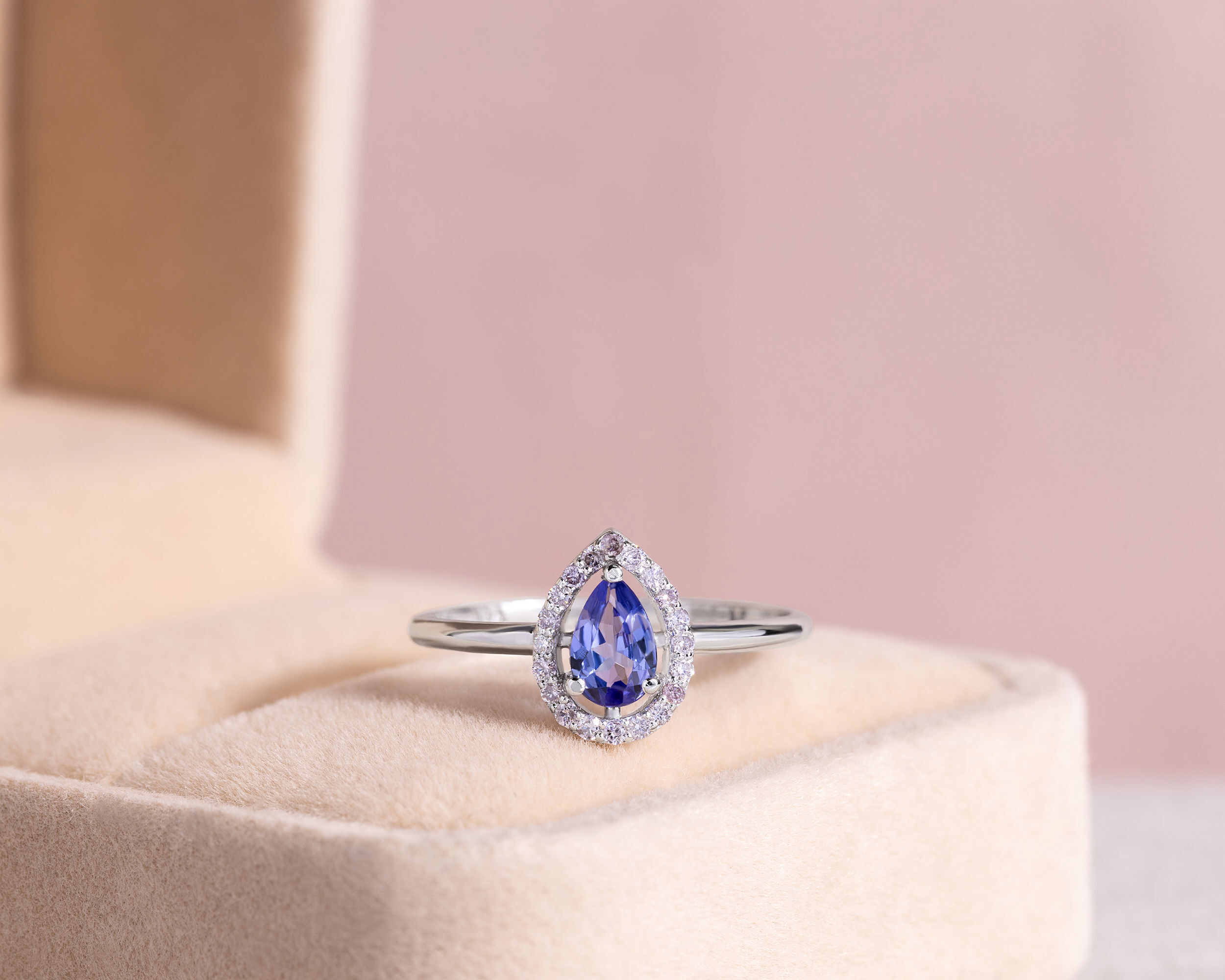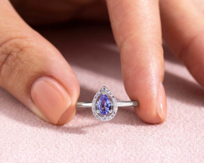 Bluish Purple Tanzanite & Natural Diamond 0.72 Ct SI2-I1 14k White Gold Ring