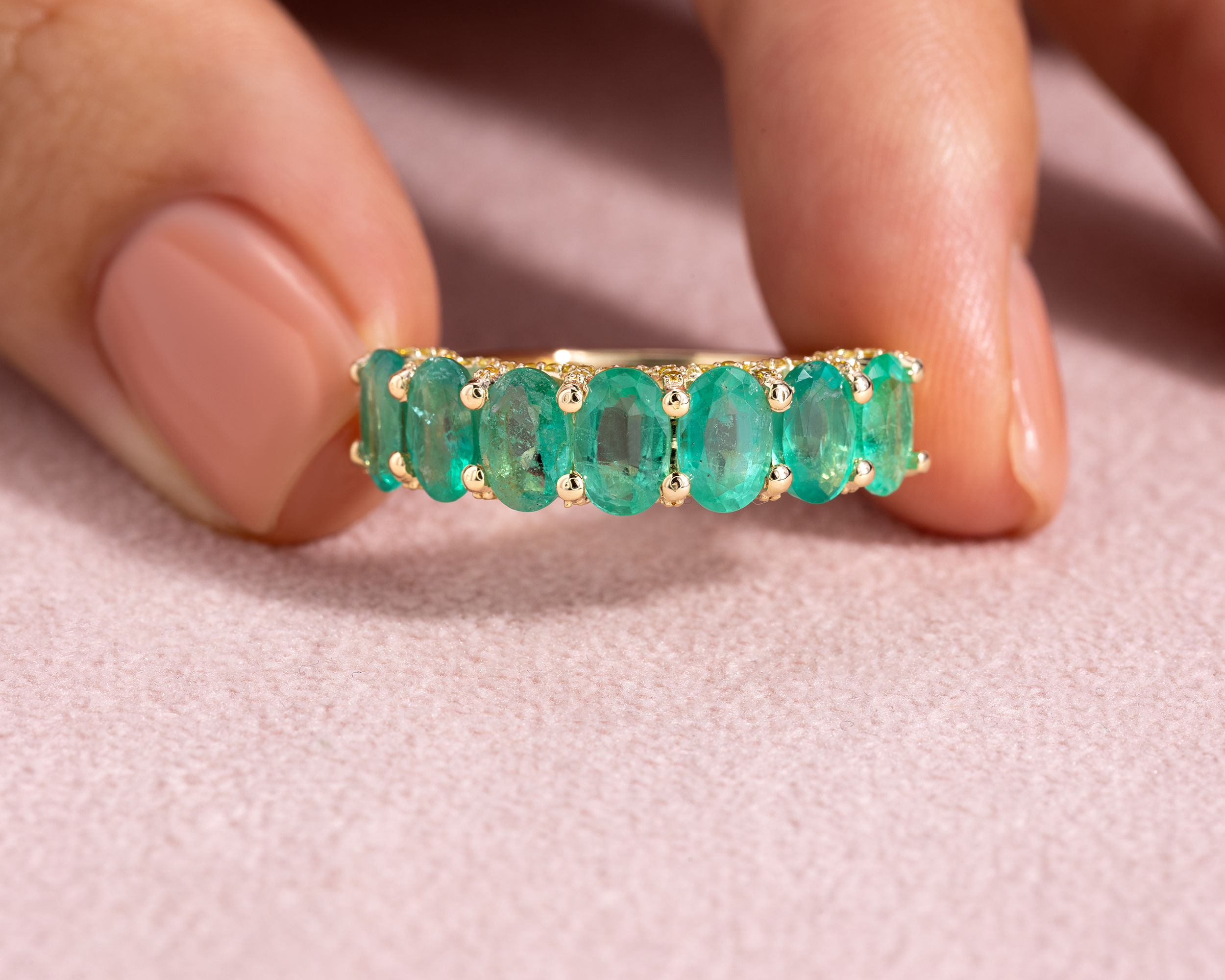 Green Oval Emerald & Natural Diamond Ring 4.31 Ct 14k Yellow Gold SI2-I2
