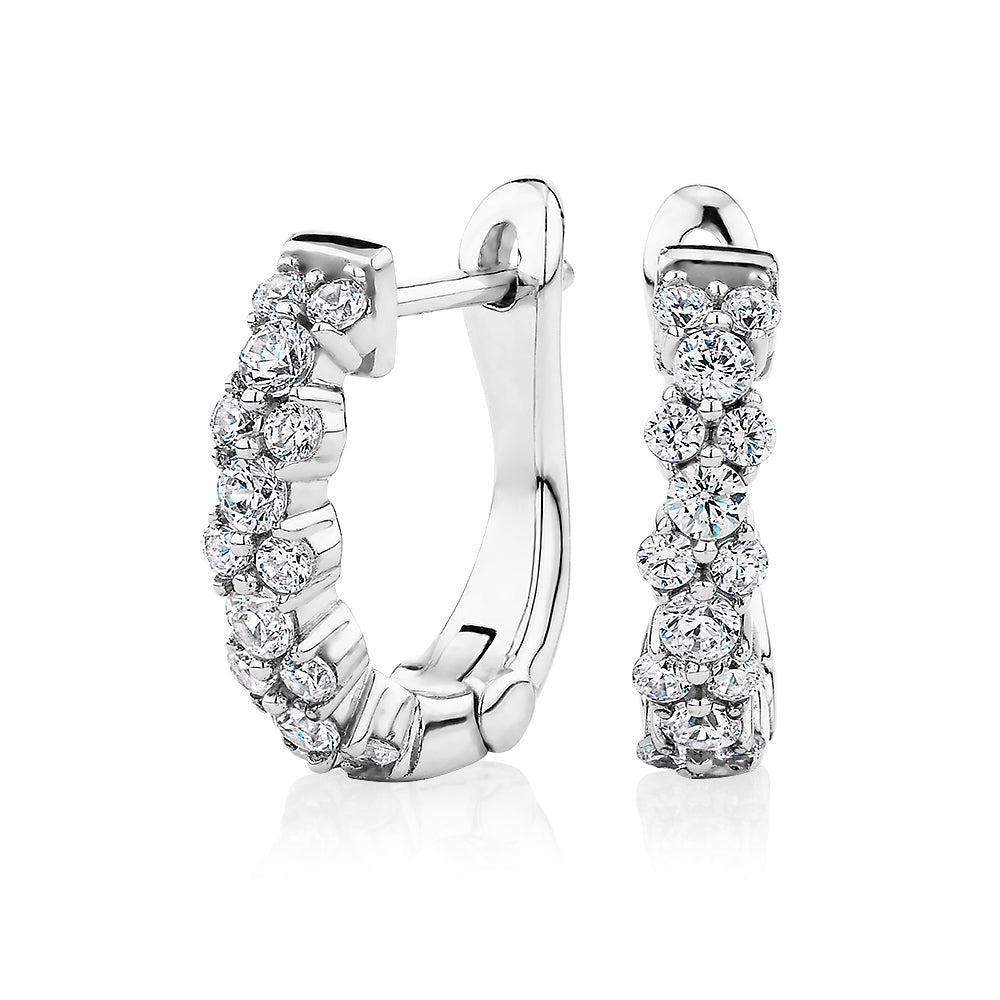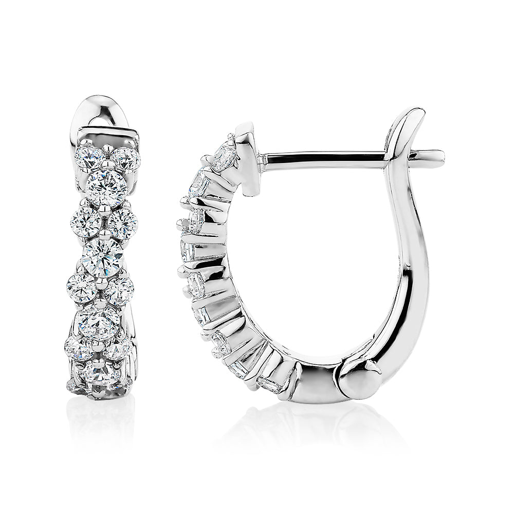 Round Brilliant hoop earrings with 0.54 carats* of diamond simulants in sterling silver
