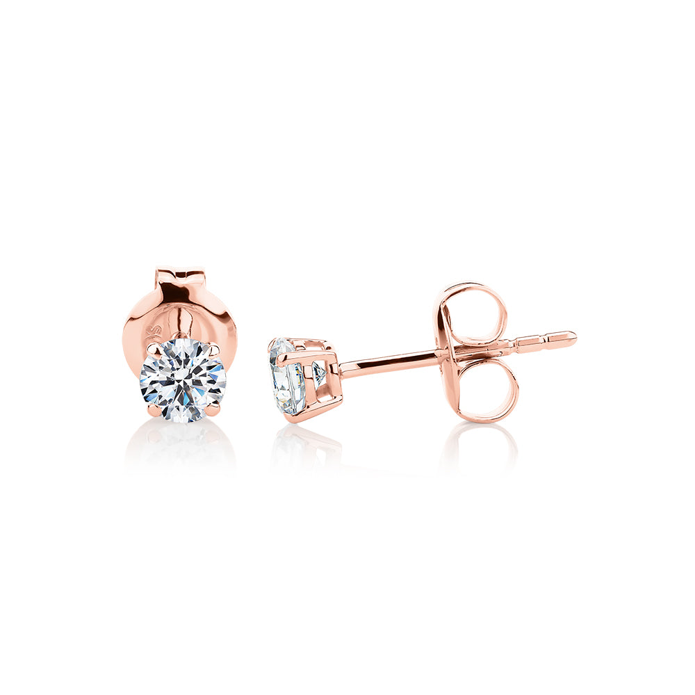 Round Brilliant stud earrings with 0.5 carats* of diamond simulants in 10 carat rose gold
