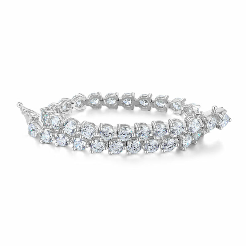 Round Brilliant tennis bracelet with 9.13 carats* of diamond simulants in sterling silver