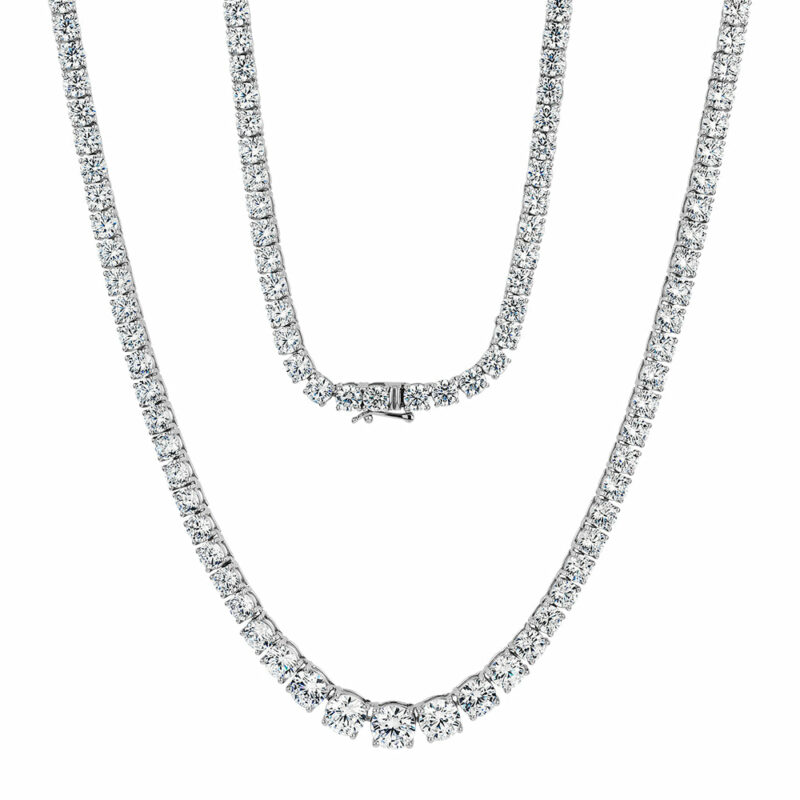 Round Brilliant tennis necklace with 29.92 carats* of diamond simulants in 10 carat white gold