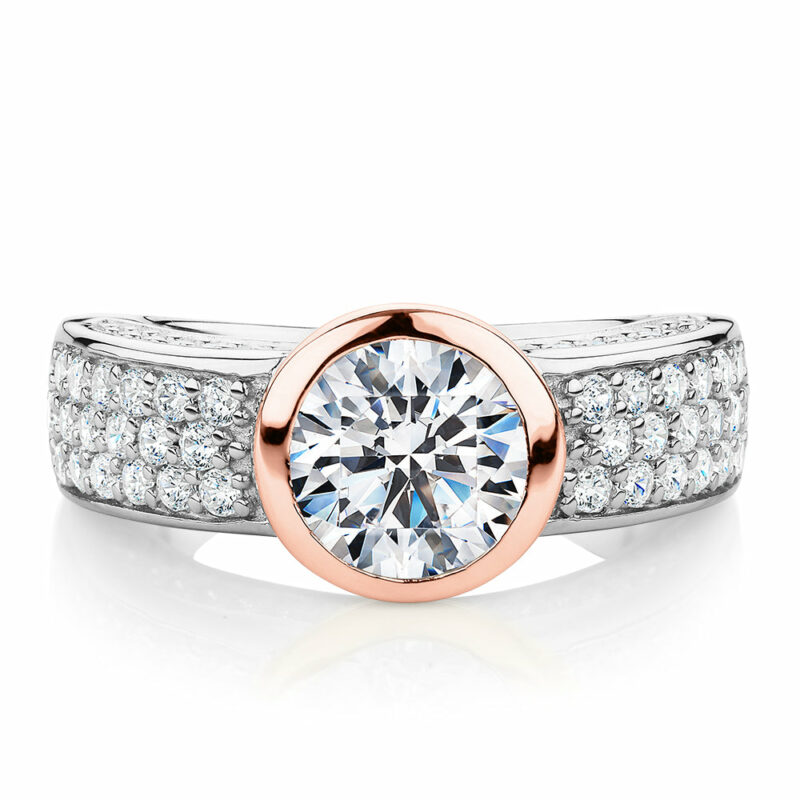 Synergy dress ring with 2.36 carats* of diamond simulants in 10 carat rose gold and sterling silver