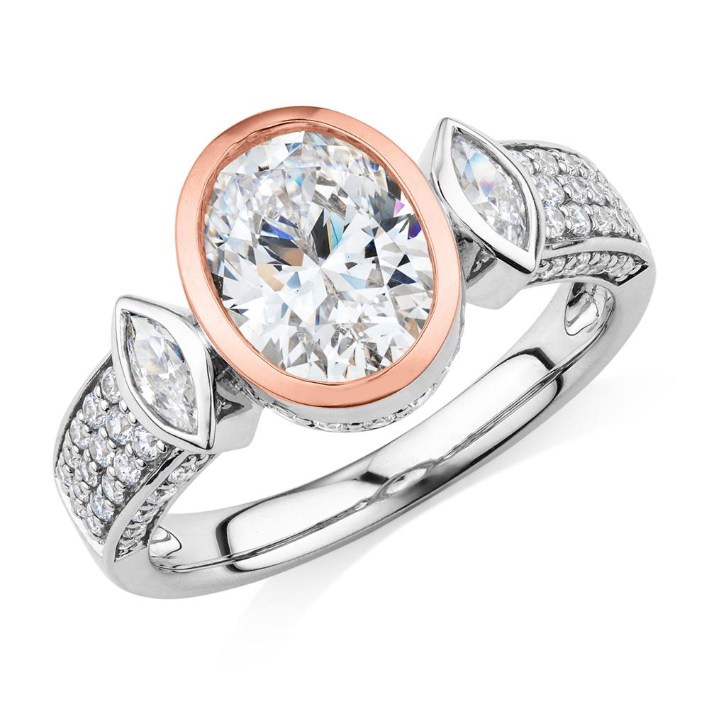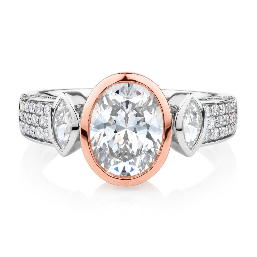 Synergy dress ring with 2.66 carats* of diamond simulants in 10 carat rose gold and sterling silver
