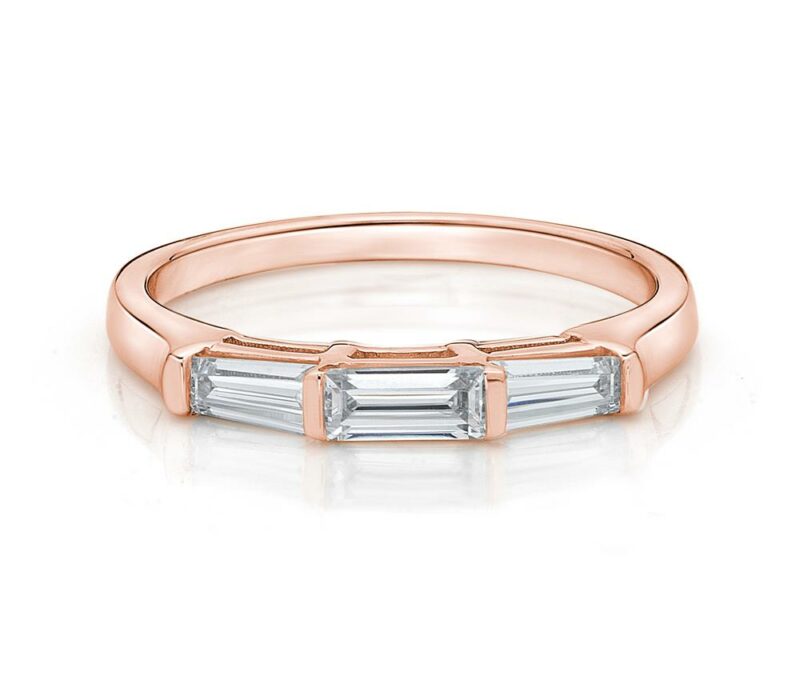 Wedding or eternity band with 0.66 carats* of diamond simulants in 14 carat rose gold